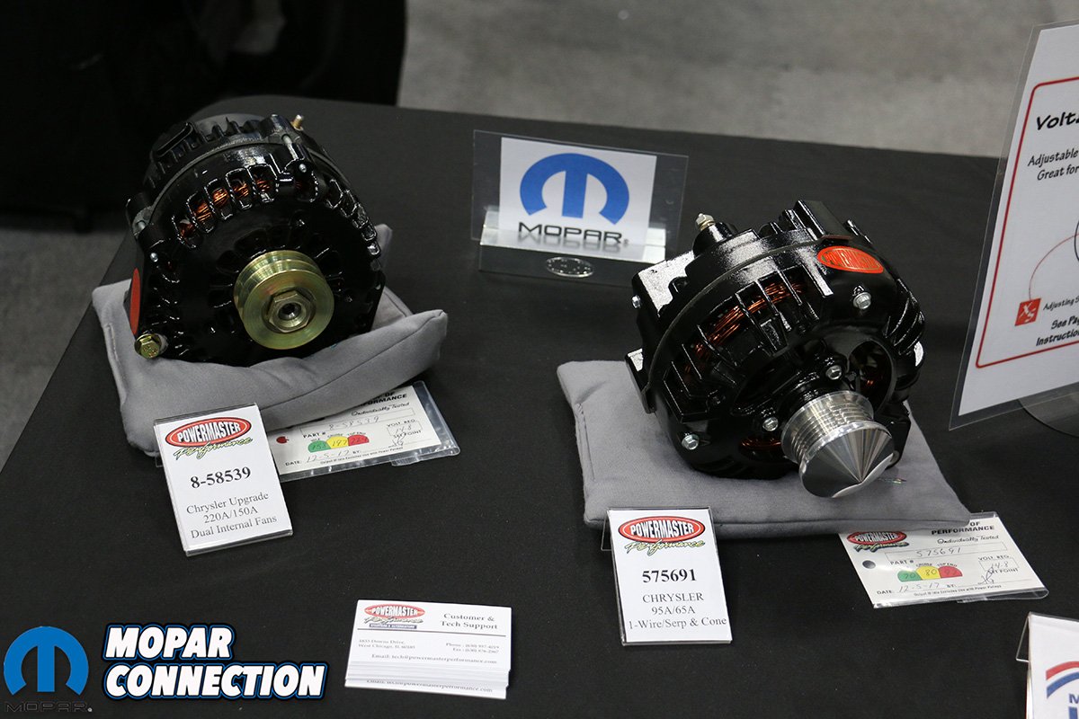 Top Left: Proform Mopar breathers. Top Right: Proforms official licensed Mopar water pumps and distributors. Bottom Left: Powermaster’s black high output alternators.