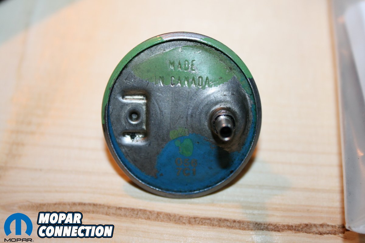 Next up was the vacuum lines and the thermal sensor. On the dual snorkel air cleaners, vacuum lines run from a vacuum pot on each snorkel to a thermal sensor at the rear of the air cleaner. The thermal sensor activates the snorkel flaps. These flaps are designed to close when it is cold. When the flaps are closed, the air cleaner is drawing hot air from the flexible hoses that are attached to the exhaust manifold metal shields. To the best of our knowledge, these thermal sensors are not reproduced. Being as our air cleaner was missing it, we decided to source out a local junkyard where we managed to score one in mint shape for $10.