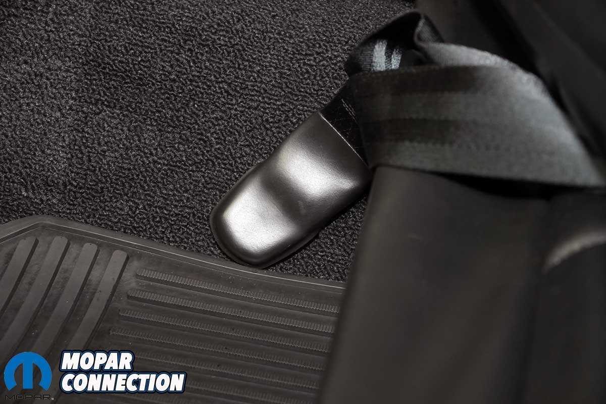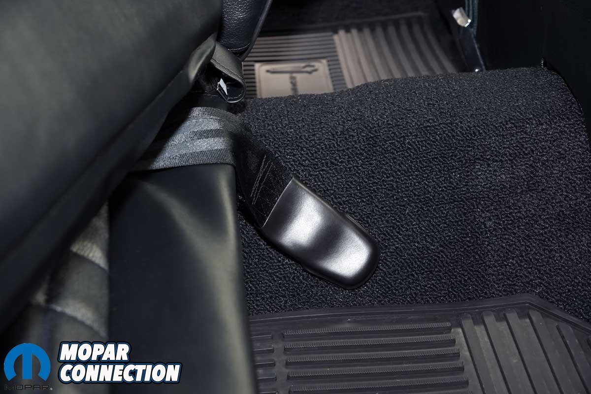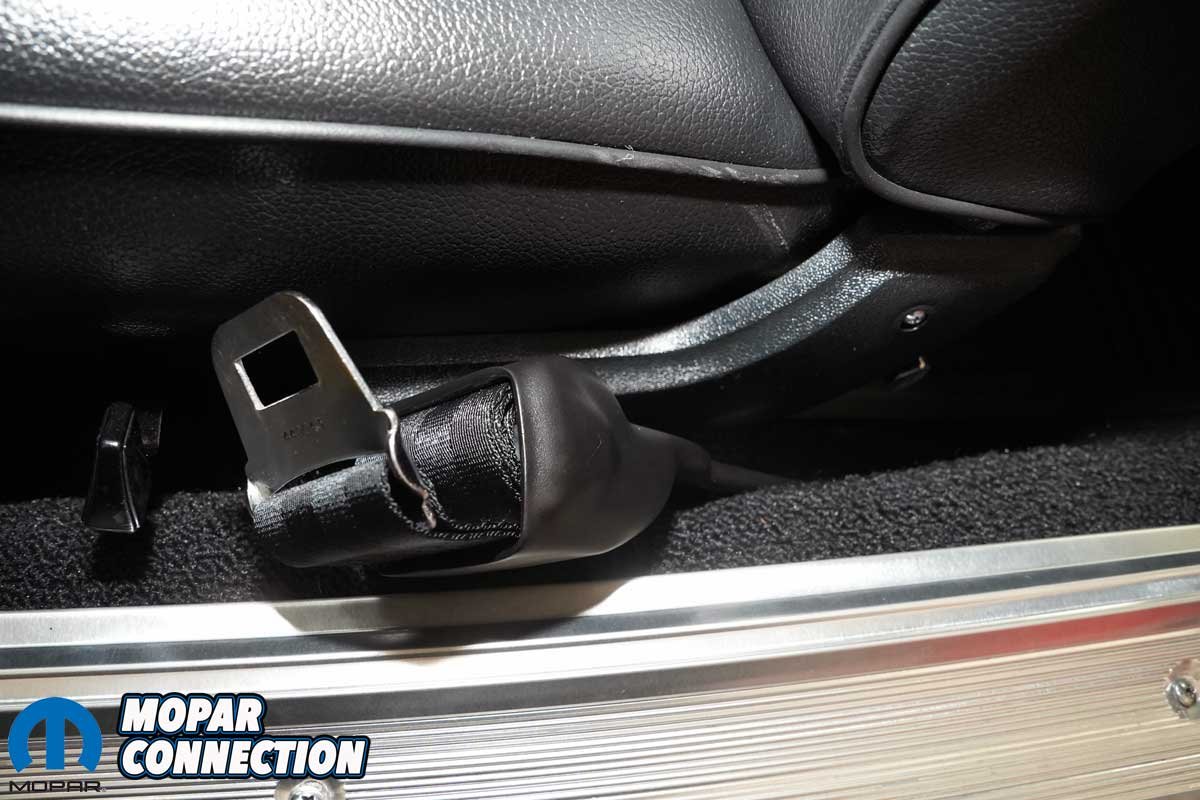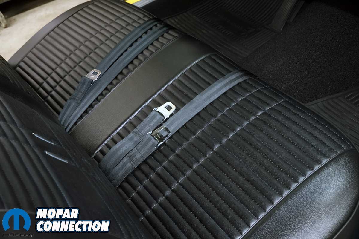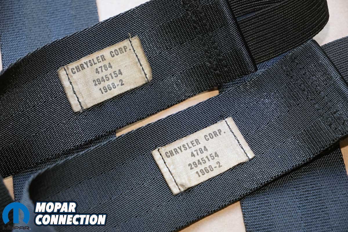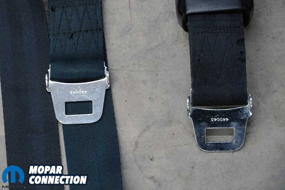 Depending on the model year of your Mopar, you may find it equipped with no belts at all, simple front outboard lap belts, the addition of rear outboard lap belts, or, on later vehicles, a combination of lap and sash belts or full three-point restraints up front paired with lap belts in the rear.
