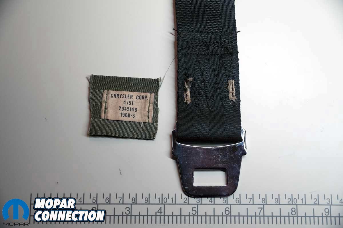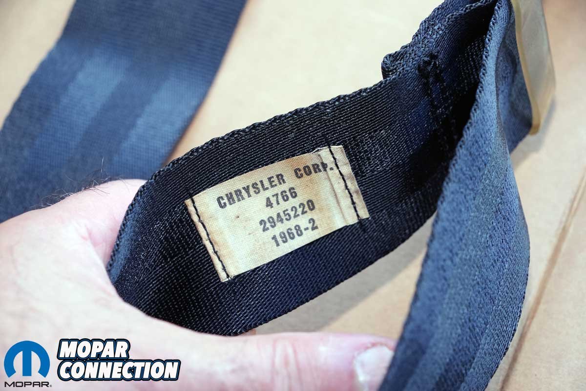 Above: We had the factory labels transferred to the new belts. All the belts in the car, except one rear seat belt, had labels, and they were in good shape.