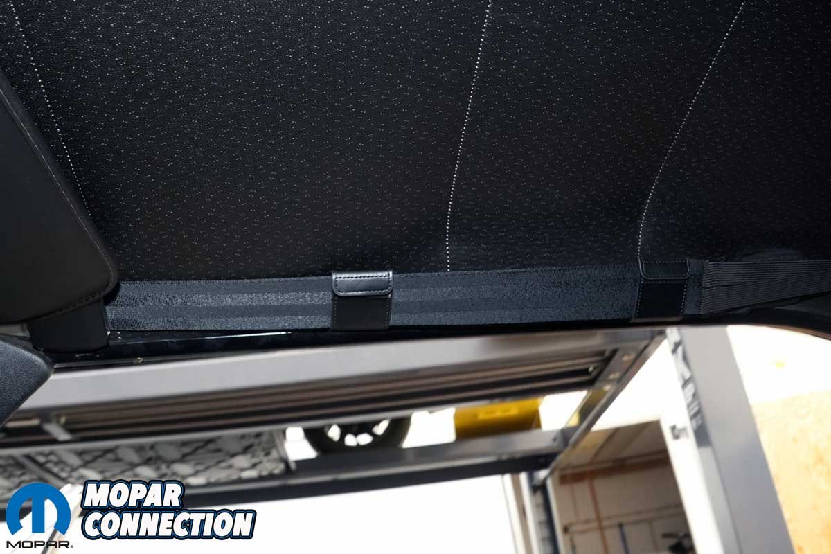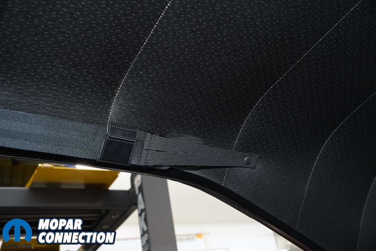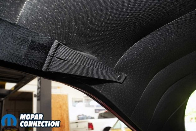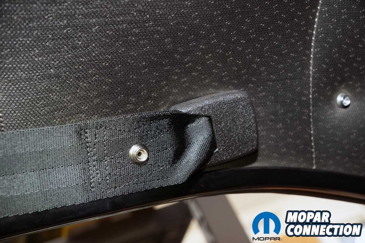 Lastly, we unthreaded the bolts for the sash belts, located at the roof area above where the Road Runner’s B-pillar would have been (no post – ours is a hardtop car). With the bolts removed, we unclasped the buckles from their storage clips near the sun visors.