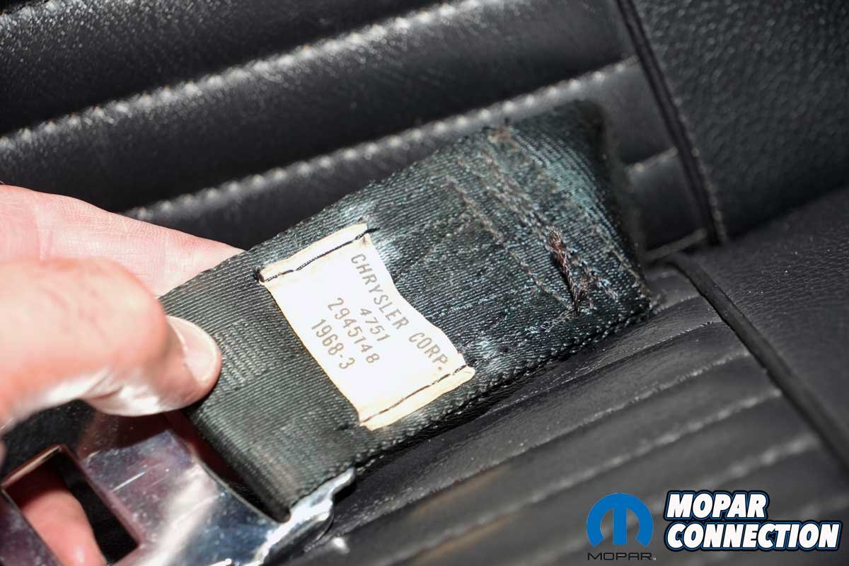 Project Rara Hemious Birdicus, our 1968 Plymouth Hemi Road Runner, represents a classic Mopar muscle car of the era. It left the factory equipped with front outboard lap and sash belts, a center front lap belt, and rear lap belts for all three seating positions. Remarkably, those original belts remained installed when we purchased the Road Runner in March 2025.