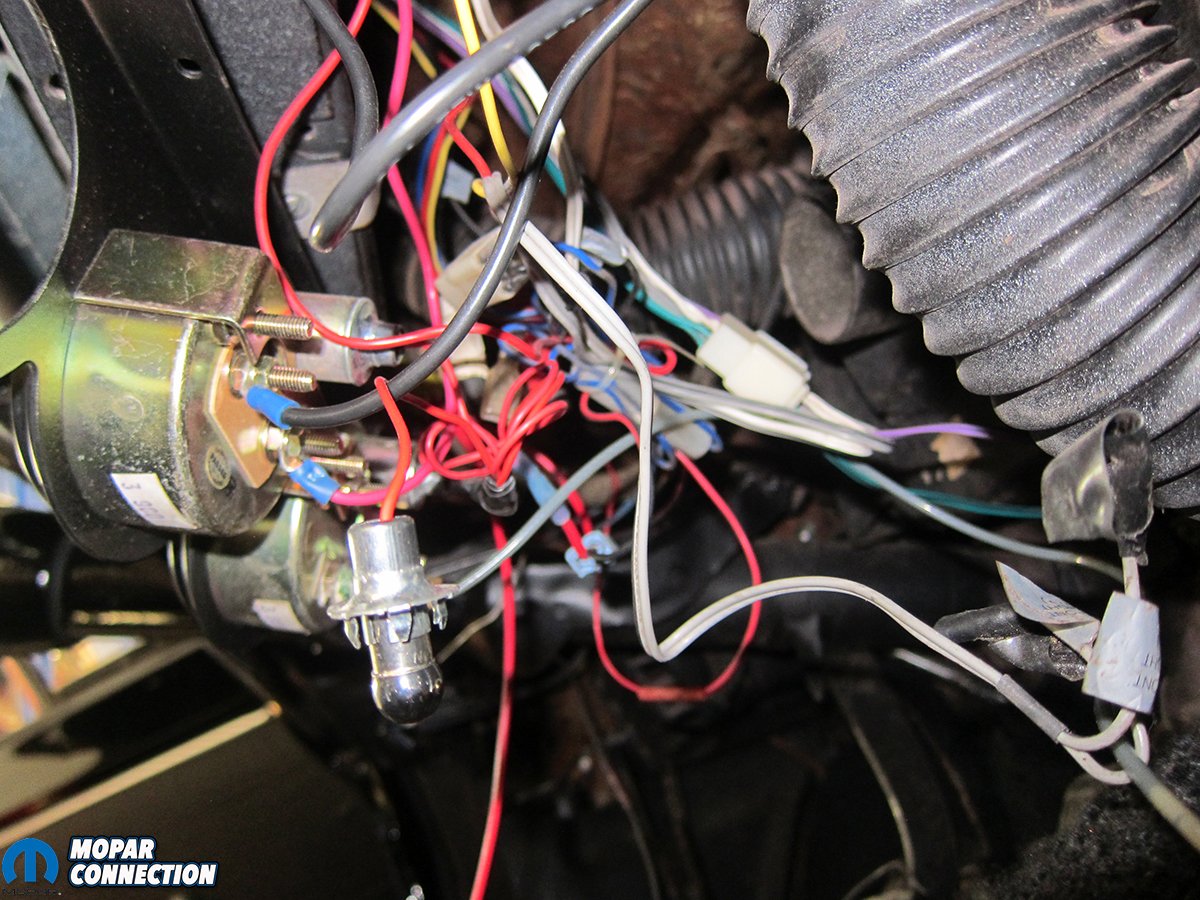 While we had the bulkhead removed from the firewall, we went ahead and verified all of the wire colors on the backside with the help of a factory service manual (P/N RSM69PLY). You never know what kind of hack has been under the dash and this car was a good example of that. The horn had not been working because someone had swapped the horn wire with the emergency brake light wire. A little wire tracing was well-worth it to revitalize that familiar “beep.”