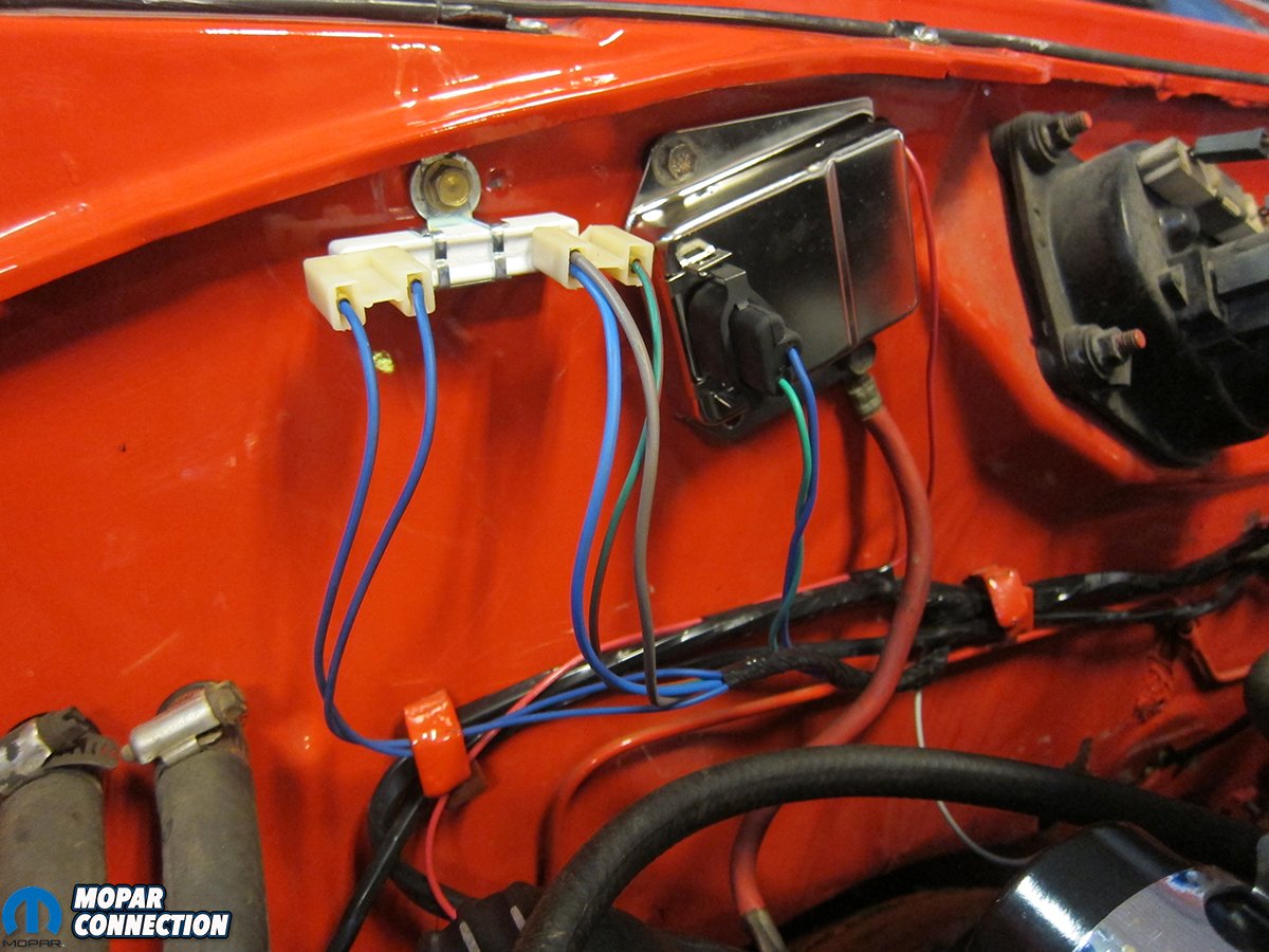 Everything starts (literally) with a solid wiring harness. If you can’t get proper power or ground to components, they are going to give you issues. It doesn’t matter what performance modifications you’ve made because the wiring is going to be the weak link. There are four major harnesses on Mopars of this era: an engine harness that runs the ignition and charging, a dash harness, and one harness each for the front and rear light systems. The bulk of those connection points happen within a three-plug bulkhead on the firewall. These plugs are not weather-tight and are subjected to corrosion that can make a harness unusable in a hurry.