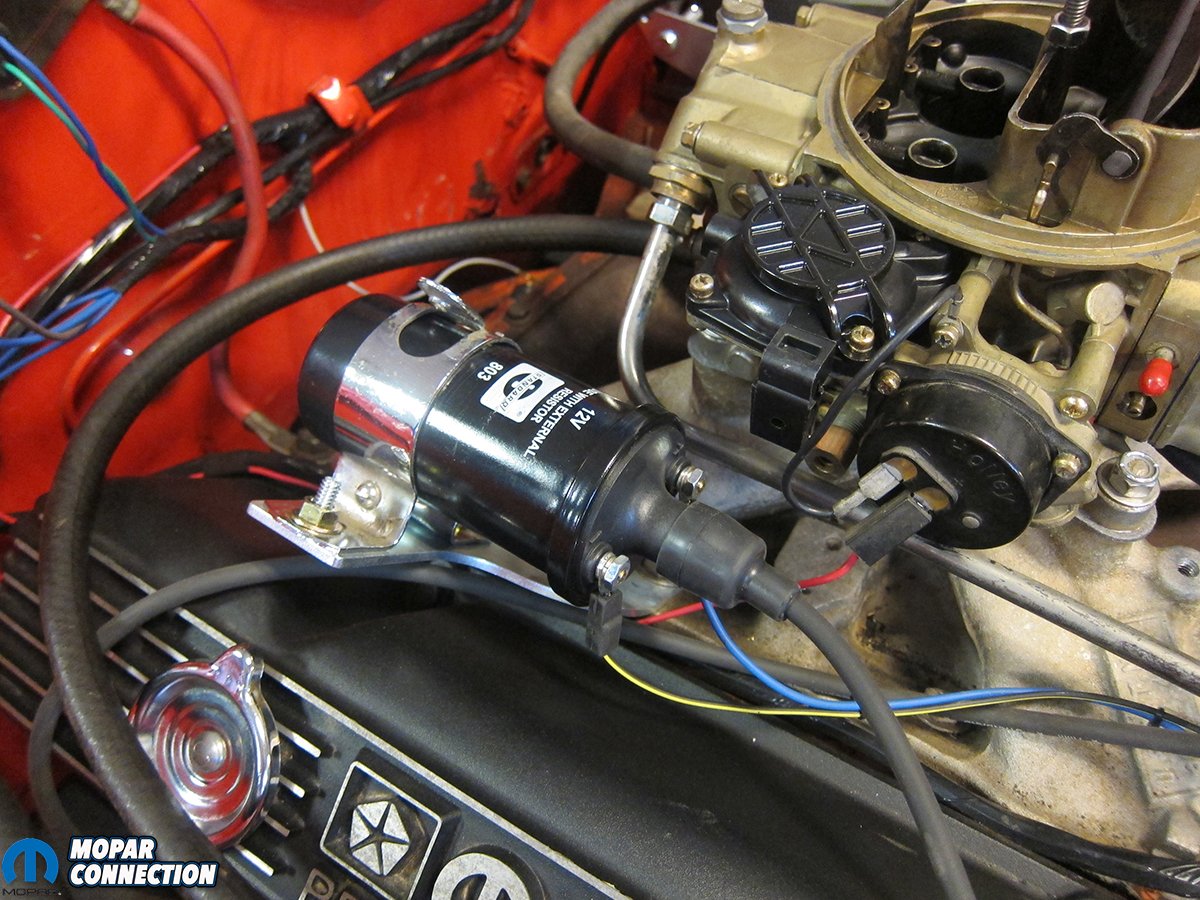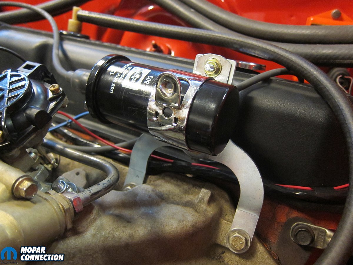 We had to ditch the high-performance MSD ignition due to the owner wanting to go back to the basics with a factory-style system. We were so impressed with the installation on our project Charger a few months ago, we went back to the well for another officially-licensed Mopar electronic ignition kit (P/N 440-427) for the big block. This time we didn’t have to make a single wire splice. The new YearOne harness already had the electronic control unit (ECU) connector built in. We mounted the ECU on the passenger-side inner fender and plugged it in.