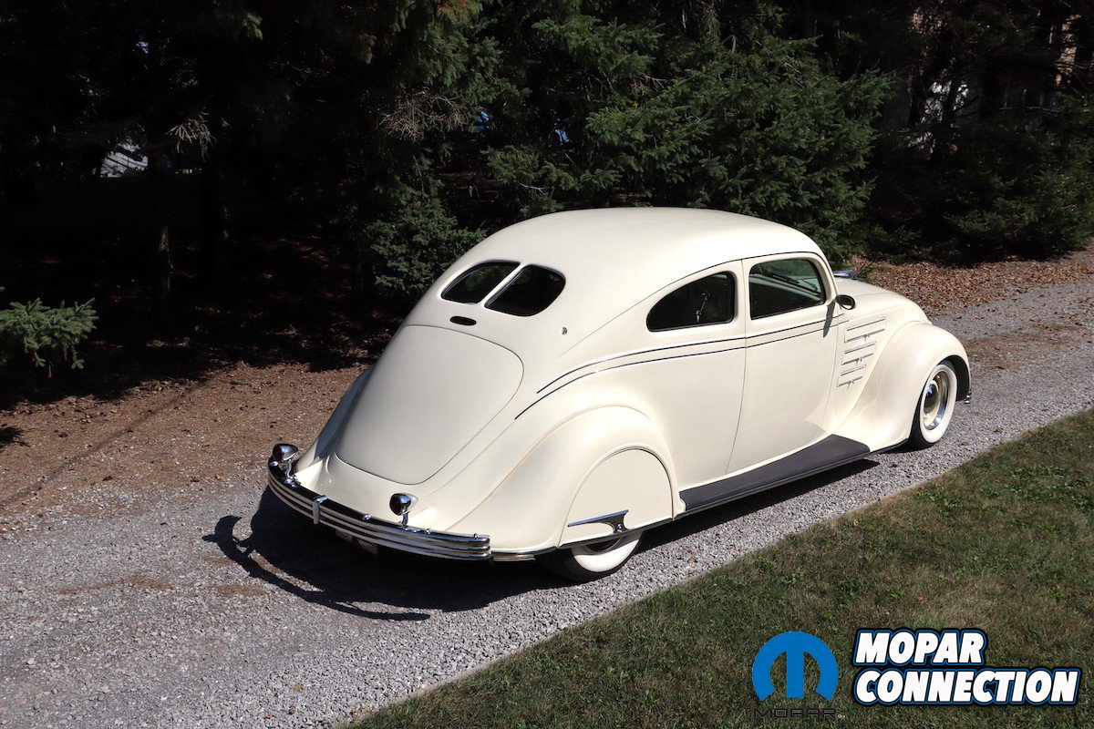 To keep the engine cool, a custom exhaust was fabricated and welded together with a NASCAR-style exhaust tip. The Airflow is equipped with an air ride suspension that is custom fabricated.