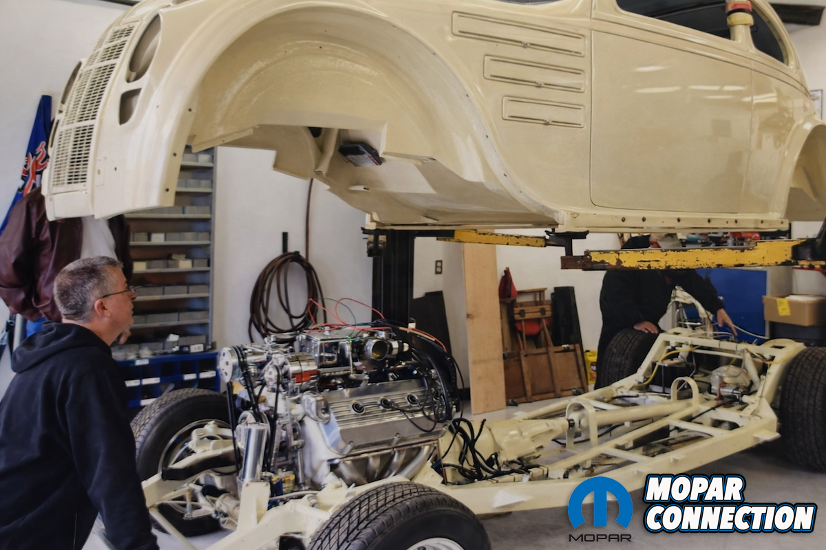 The car was in such a rough condition that a full restoration was no longer feasible, making a restomod and rebuilding new doors, the main floor, the trunk floor, and the firewall necessary. To complete the transformation, he fabricated and installed a roof skin from a 1999 Ford Crown Victoria, all done by hand in his home shop with his friend Lou Brisson. The custom frame with rear wheel tubs and fuel tank, which was 14-gauge aluminum again, was specially fabricated.