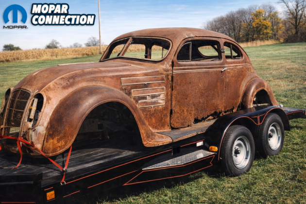 The car was discovered in Utah by Chuck Cochran, who found its body sitting atop a subframe that had a tree growing through it—a testament to its long-abandoned state. Chuck had previously discussed the vehicle with Robert at Hershey, sparking his interest. He later traveled to the United States to examine the Airflow in person. While the car turned out to be in worse condition than anticipated, Chuck decided to purchase it anyway, seeing potential in the rare piece of automotive history.