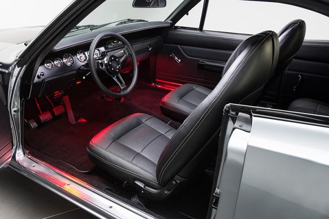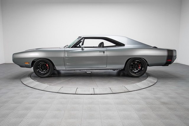 Starting with a rust free desert car from Arizona, the laser straight body was treated to all the usual metal prep tricks and then perfectly painted in PPG Grigio Pearl Metallic paint. To add some fine detail to the Charger, they decided to go with a satin black hood and bumble bee stripe to keep with that old school Mopar feel. Inside, all of the original interior panels and seats have been fully redone in rich gray leather. This 1970 Charger is one beautiful ride that not only looks great, but performs just as well! It recently sold on eBay for a whopping total of $279,000 USD! Wow!