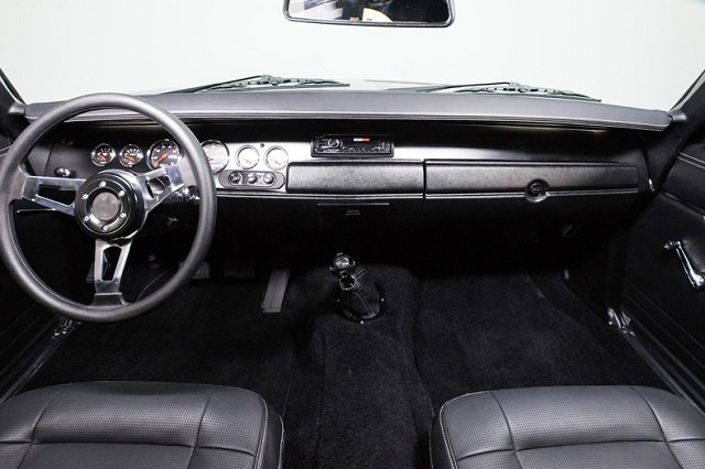 To start, they added a brand new Indy Cylinder Head 500 cubic inch V8 Wedge motor dyno’ed at a respectable 575 horsepower and 575 ft-lbs of torque. The engine is fully loaded with all the best performance parts. These parts include a Billet Specialties front runner serpentine system, Eagle H-Beam rods, Speed Pro hyper pistons, Edelbrock Performer RPM heads, Comp Hydraulic cam, Mopar M-1 single plane intake, 750 Mighty Demon carburetor, Milodon oil pan and tray, MP electronic distributor and topped off with a custom Six-Pack style air cleaner! All those horses are mated with a Tremec TKO-500 five-speed manual transmission followed by a Moser built Dana 60 rear end equipped with 3.54 gears. The running gear in the Charger is a truly remarkable combination of modern hardware.
