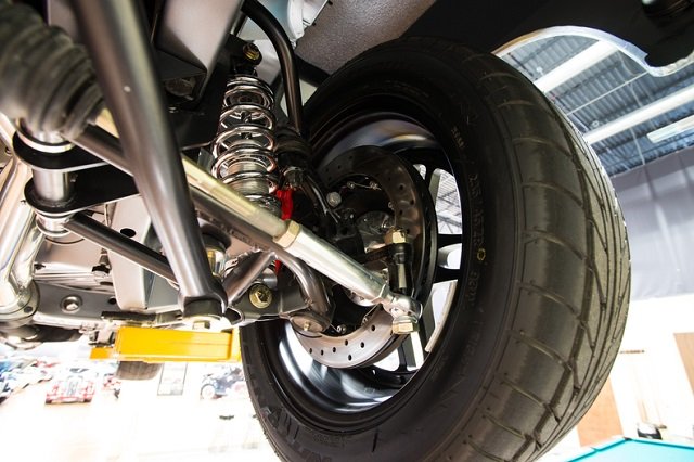 To go with the ‘pro-touring’ theme of the car, they went with a RMS front sub-frame with rack and pinion steering, RMS 1.25-inch tubular control arms with heavy duty rod ends and AFCO double adjustable coil-over racing shocks for a fully adjustable track day ready front end. Under the rear of the Charger is a Detroit Speed altered four link setup. Also fitted is a Wilwood disc brake kit (six-piston front/ four-piston rear) using 12-inch rotors that provide incredible neck breaking stopping power. To plant the Charger to the ground, they enlisted the use of a set of 18 and 19-inch Fiske brand three piece wheels and Michelin Pilot Super Sport tires.