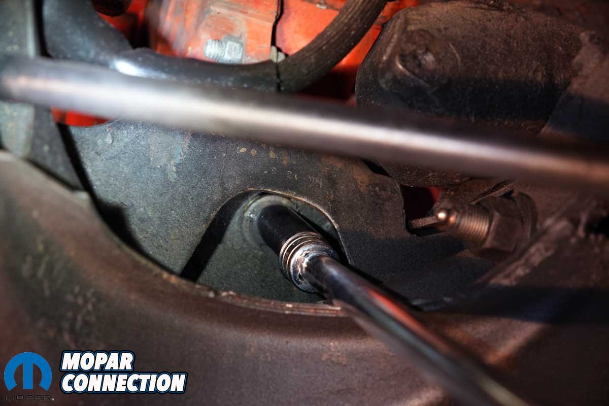 Above Left: We took one last shot of the passenger’s side mount and isolator. We mounted the bracket properly and installed all the fasteners in the correct orientation. Above Right: Moving to the driver’s side, we unthreaded all three fasteners.