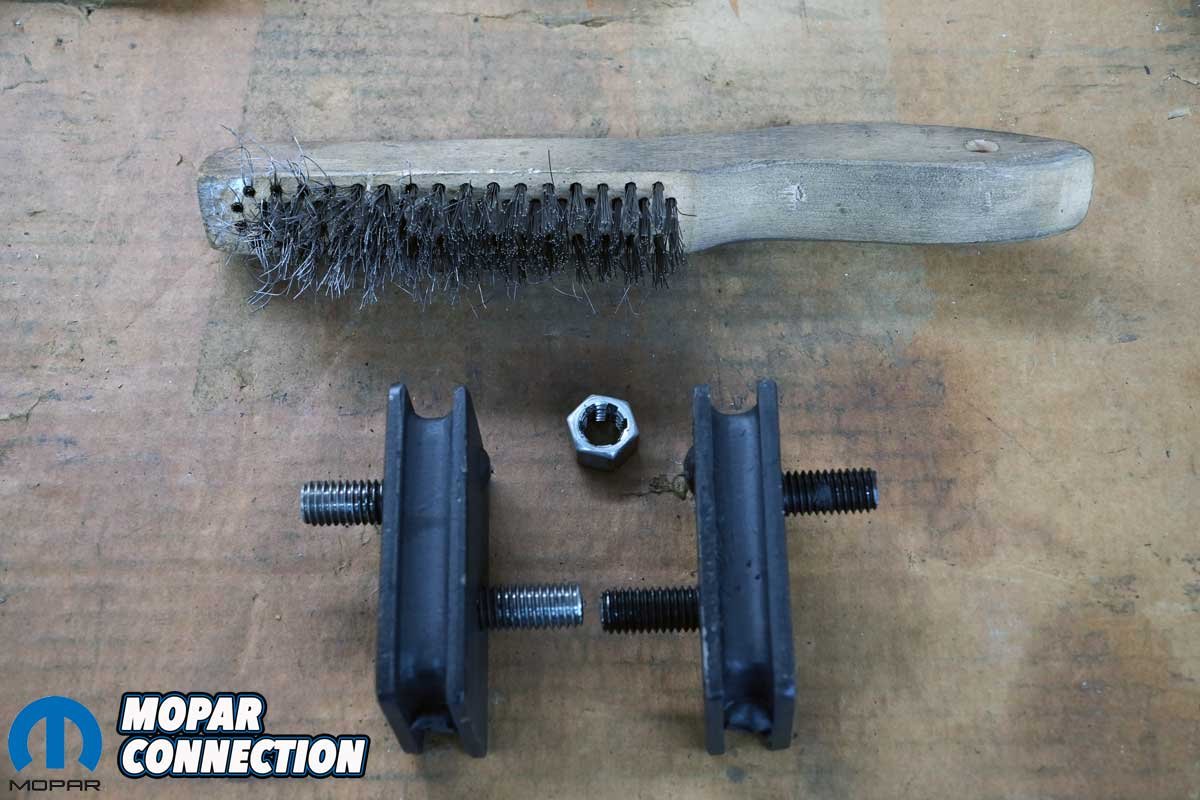 Before we attached the isolator to the engine mount, we cleaned the threads of the two studs (one for the bracket and the other for the K-member) with a thread chaser and a wire brush to remove any paint that could cause an incorrect torque value when tightening each nut.