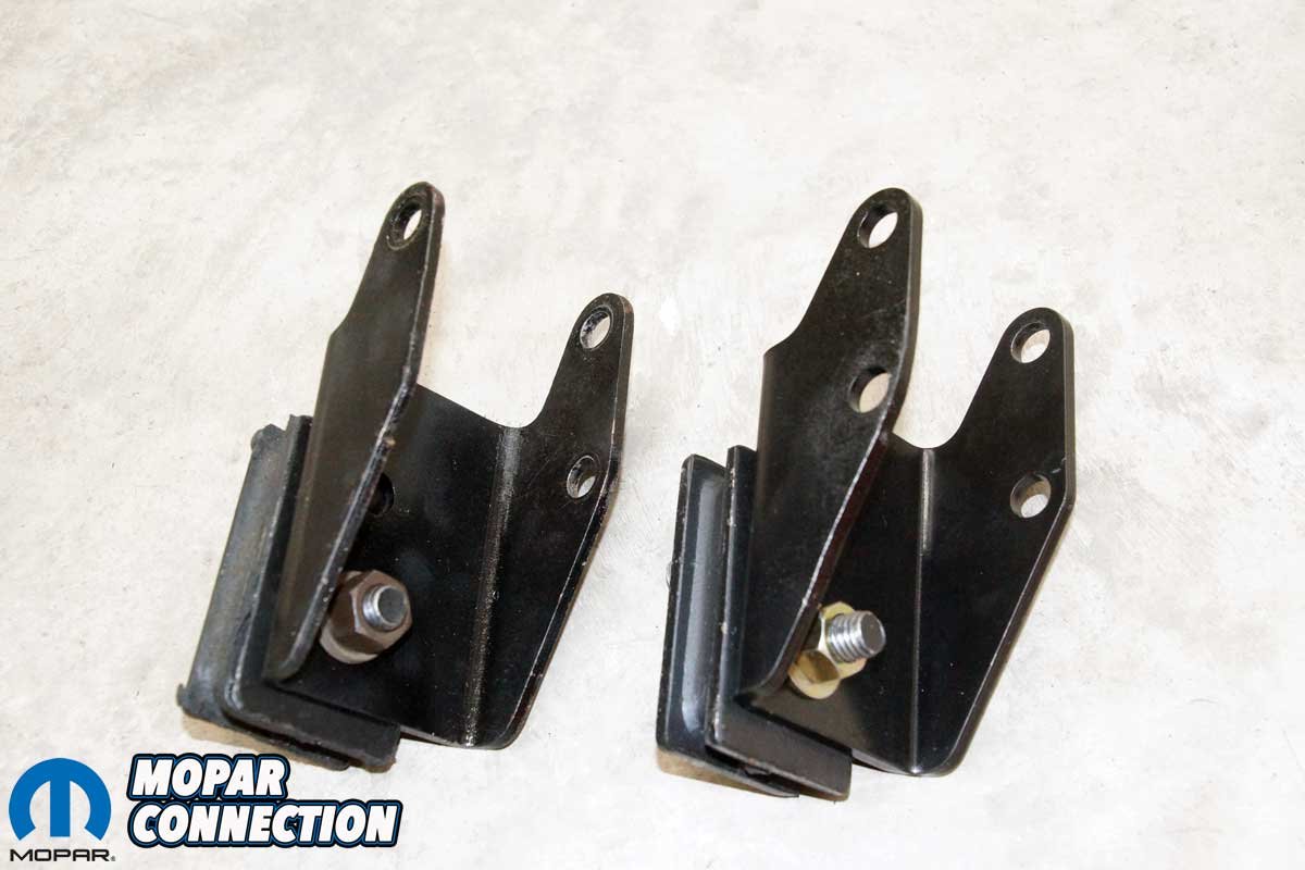After a quick call to Schumacher Creative Services (Engine Swaps Simplified), we had a pair of engine mounts (Part No. A67A) on the way for our 273-equipped Dart. The USA-made kit included powder-coated left and right brackets, a pair of factory-style rubber isolators, a grade 8 hardware kit, and mounting instructions.