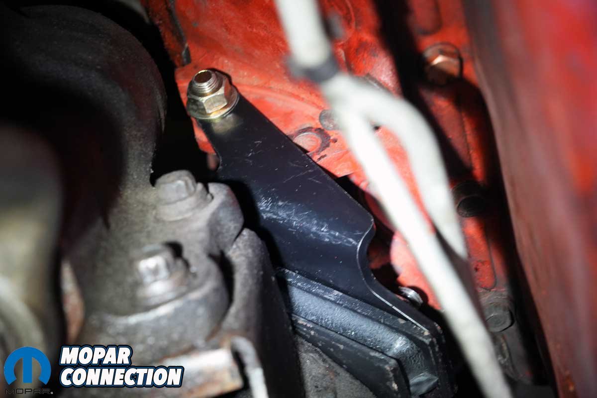There was a noticeable difference between the factory bracket and the Schumacher unit. Both had three mounting holes, but the new bracket had only a high mount hole for the rearmost fastener, while the factory bracket utilized a lower hole. However, the engine had four bosses, so regardless of the bolt-hole location, all three fasteners could be installed, which we did without difficulty.
