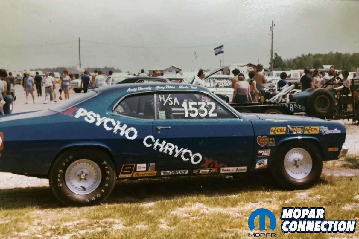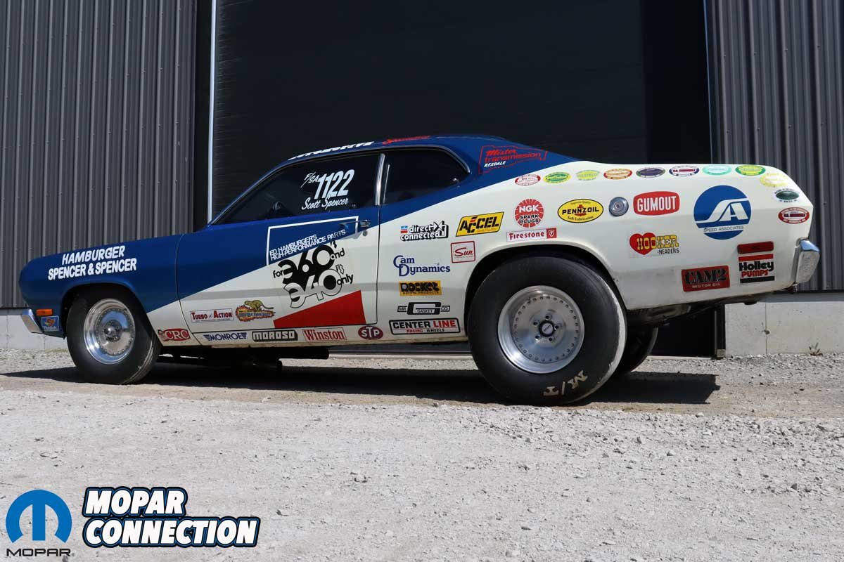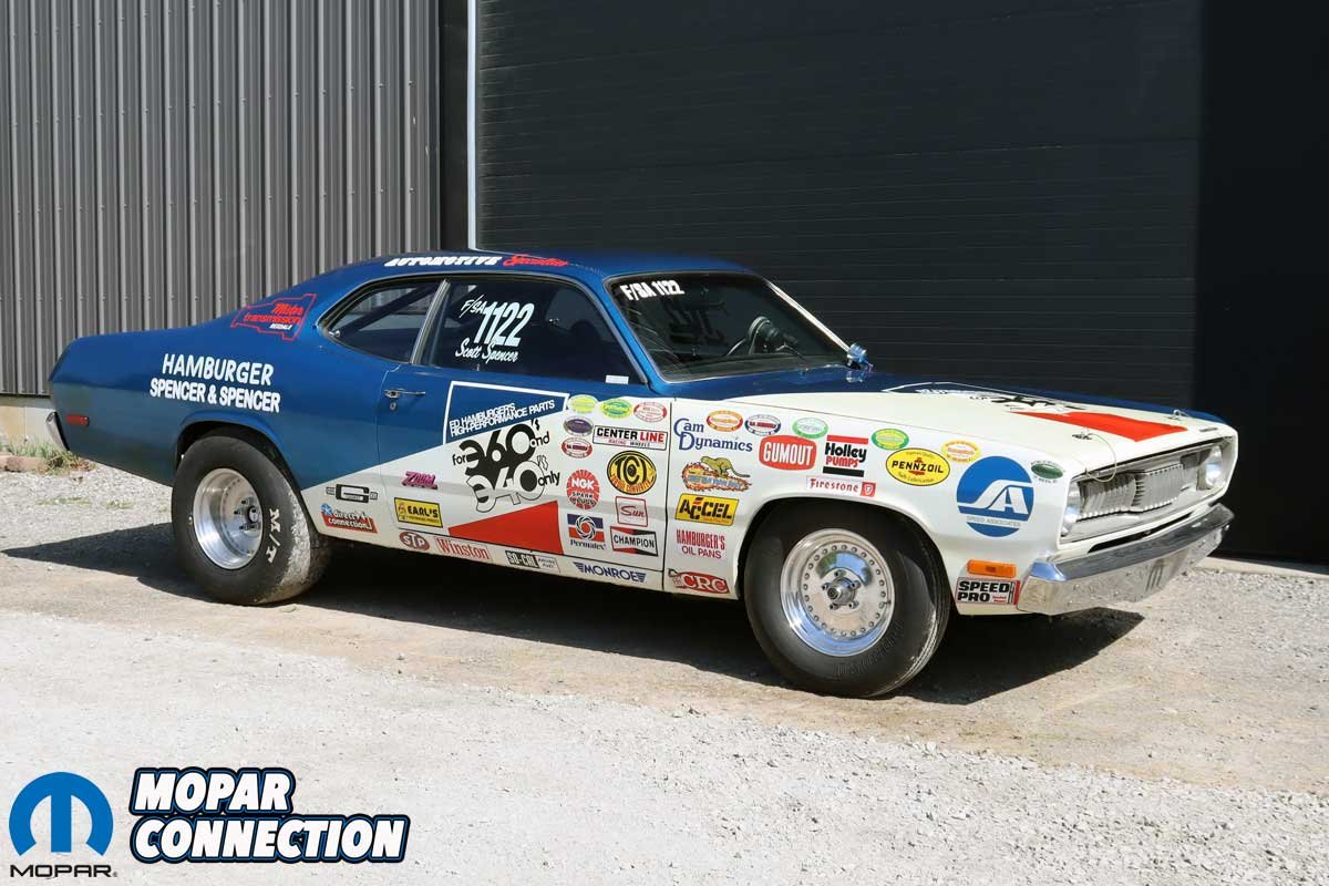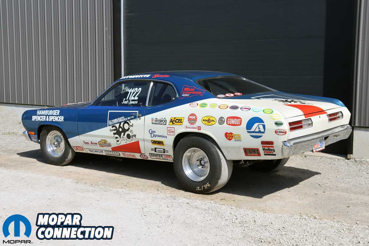 In 1973, Andy Kennedy and Gary Pieters purchased the car and enlisted racer Scott Spencer to convert it into an NHRA Stock Eliminator. Spencer, who ran a speed and chassis shop while actively competing, gave the Duster its racing edge.
