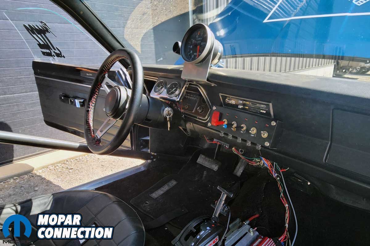The car was repainted in metallic blue, a color it still wears today, and modified with a roll bar for safety and chassis reinforcement. NHRA rules of the era required the original seats to remain, with only the rear seat removed. In 2023, the front seats were updated with Summit Racing poly drag buckets and 5-point harnesses for modern safety.