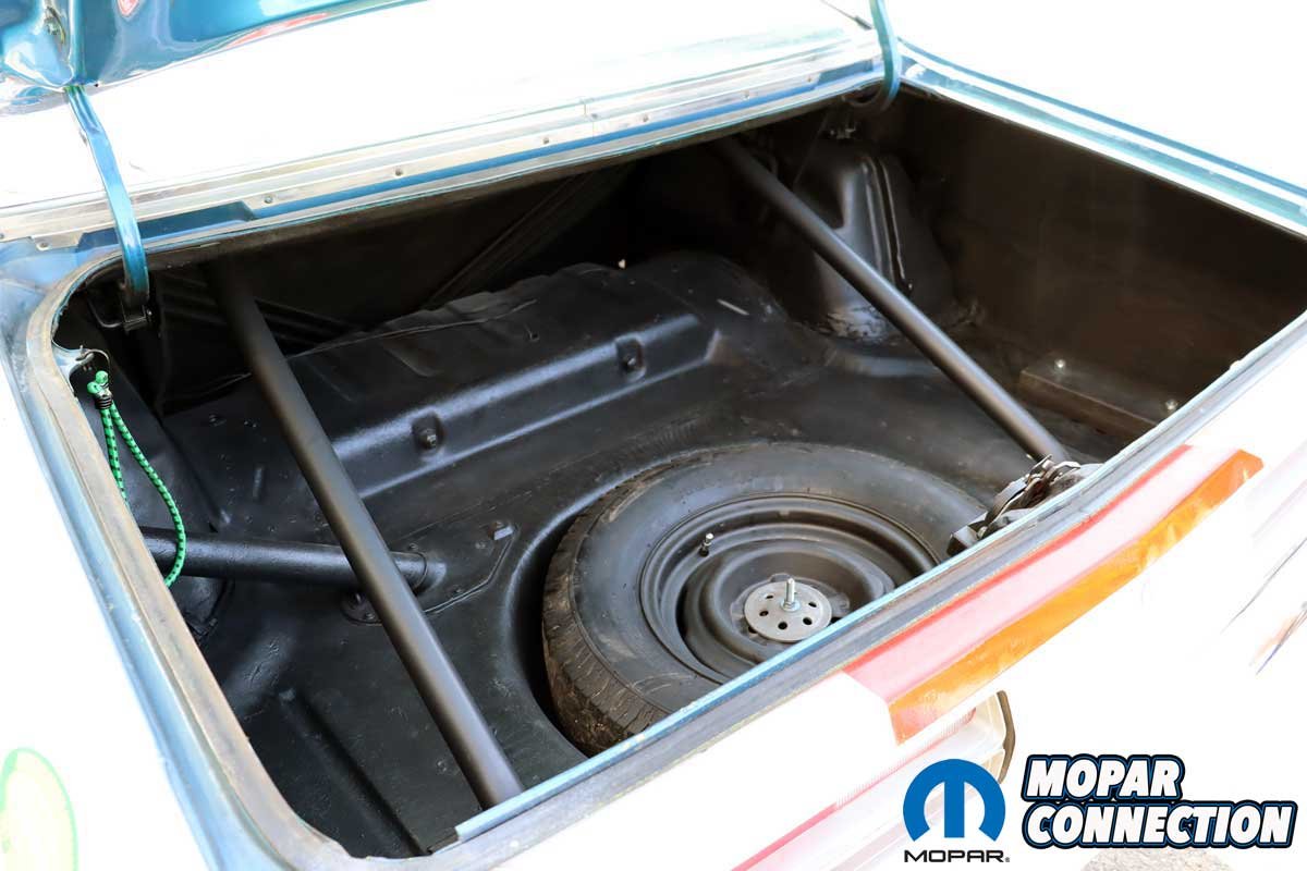 Although initially a 4-speed car, it was converted to an A-727 TorqueFlite, then finally to its current A-904 automatic, equipped with a Turbo Action Cheetah valve body and a high-stall converter. Out back, an 8 ¾ rear with 4.88 gears, a 30-spline spool, and Bears Performance axles puts power to the pavement.