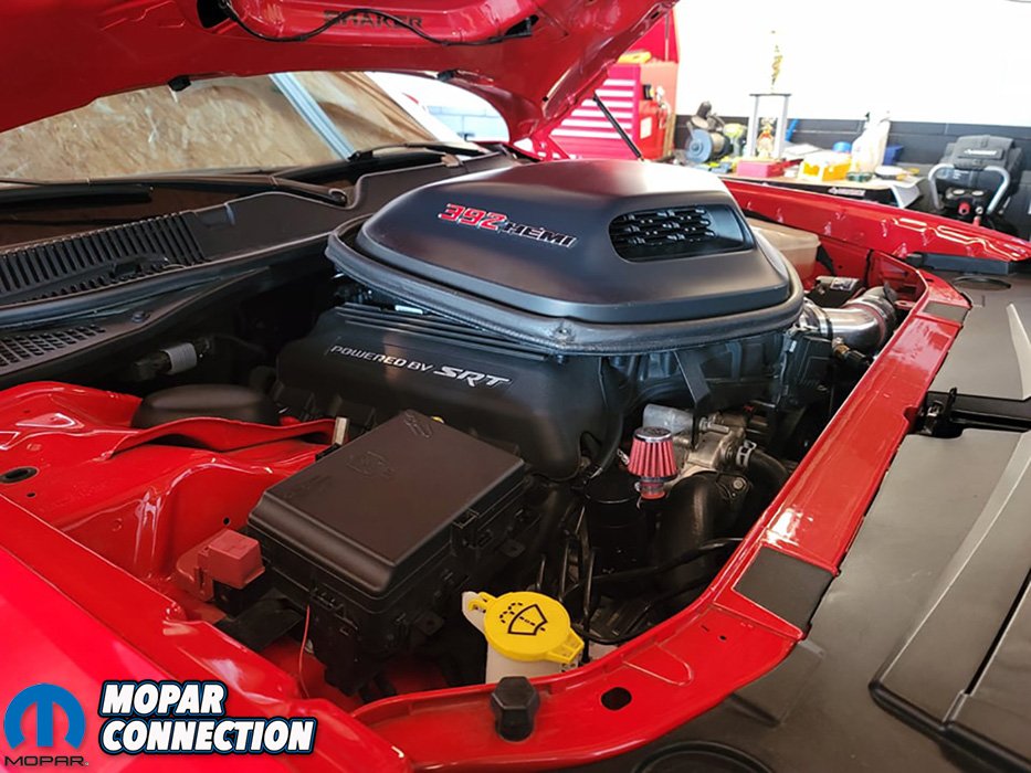 With all of that in mind, he settled on TorRed Dodge Challenger 392 Shaker with a manual transmission. Emery fell in loved with his Dodge Challenger 392 Shaker from the instant that he got it. As time went on, he began to get the itch for more power. At first Eric started shopping for a Challenger SRT Hellcat, but after doing some research on modifying his current 392 Shaker car, he decided that would be the better route.
