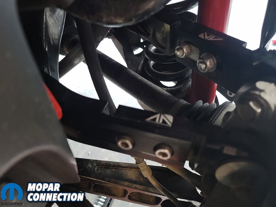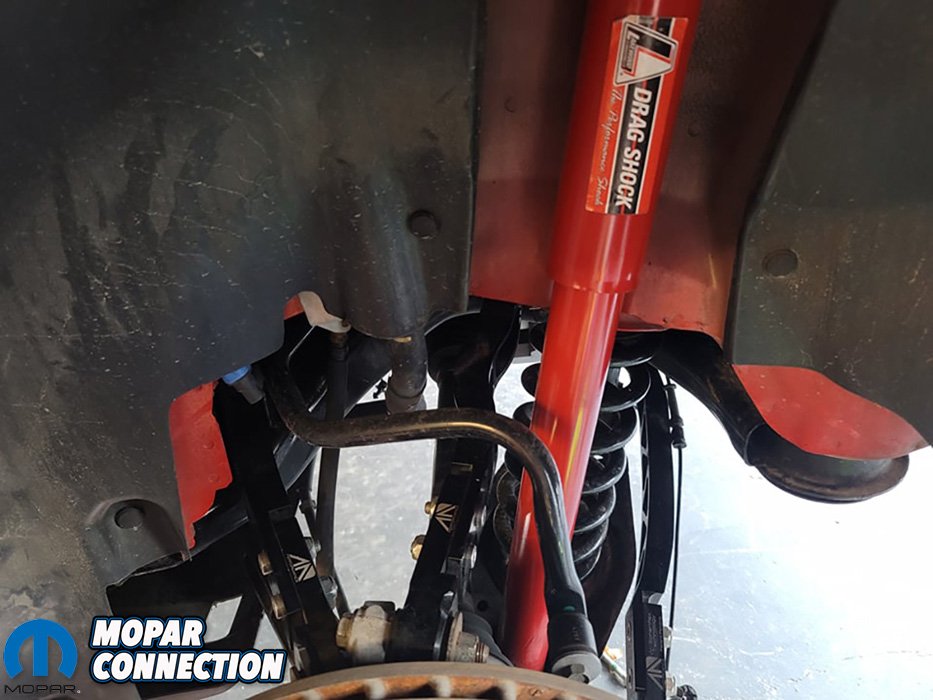 The rear suspension was upgraded with AAD upper and lower control arms, Lakewood shocks and Dodge Challenger 1320 springs. The rear differential was secured with a Per4mance Development DIRS differential brace and BMR rear cradle lockout bushings. A set of Mickey Thompson ET Street R tires put the power to the ground. “The cost of building a car like this is fairly substantial. There is over $26,000 dollars worth of work done to make this dream a reality. Quite a bargain considering that even with the cost of the car, it was cheaper to build than a lightly optioned Hellcat.”