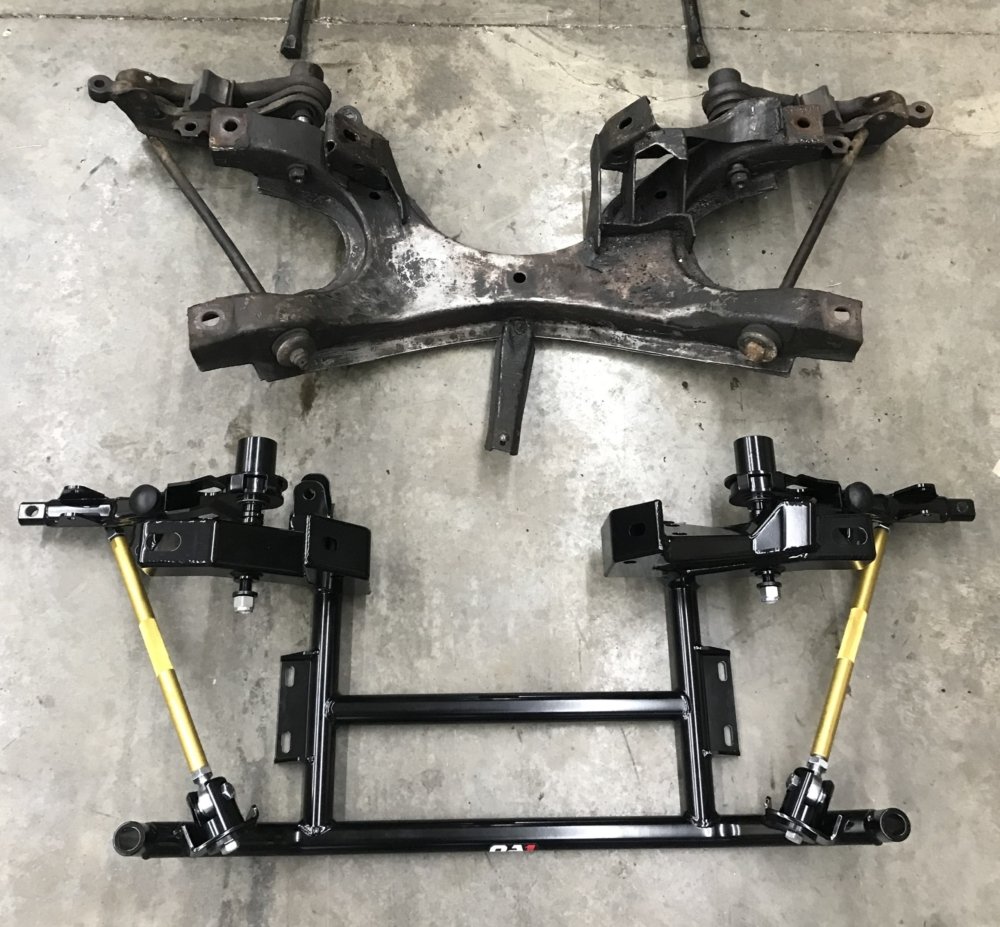 We opted to replace our stock K-member with the QA1 Tubular K-member for several reasons and are very happy with the choice. Besides weight savings, it opens a ton of room up under the car making it easier to work on things and allowing for more oil pan options. It is also stronger than the factory K-member. Some claim the tubular K-member isn’t suitable for the street, but we’ve had zero issues after roughly 5,000 miles, nor have any of folks we’ve talked to running them on wheel-standing Mopars! We completed our K-member with QA1 lower control arms, QA1 adjustable strut bars and SPC adjustable upper control arms. These changes resulted in a savings of 9.4lbs (75.6lbs vs. 66.2lbs).