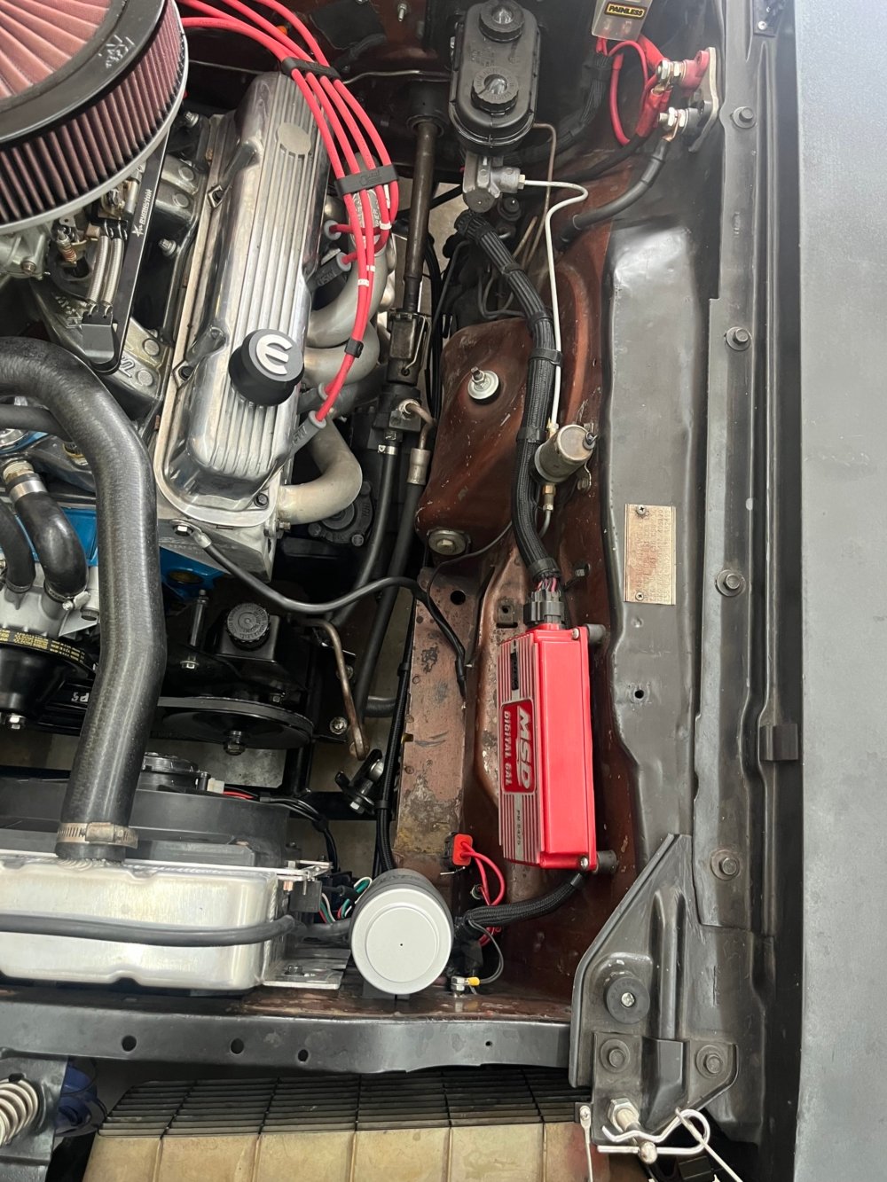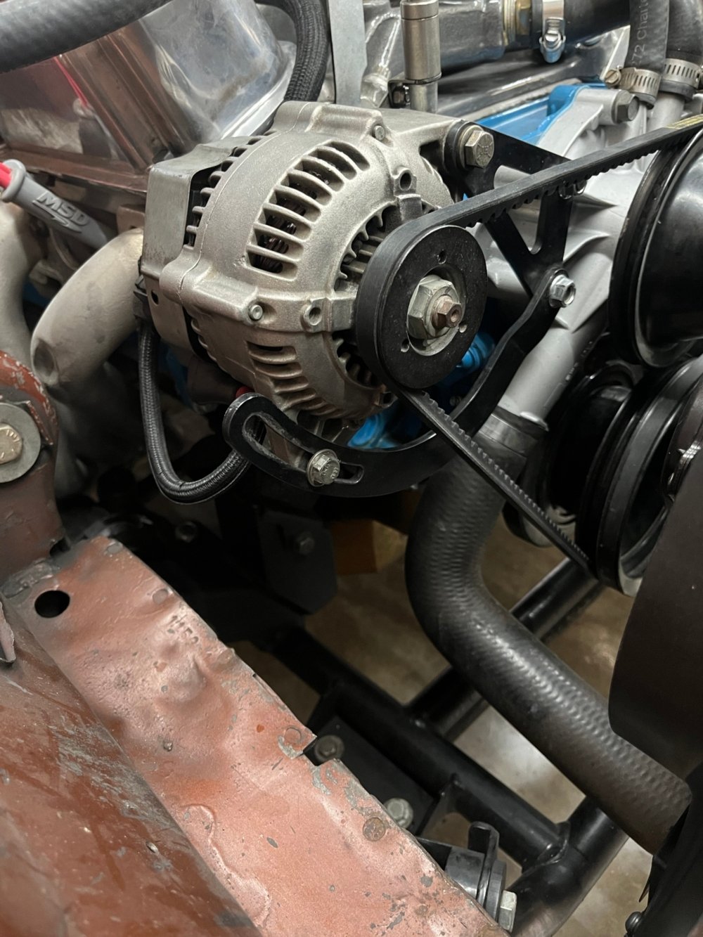 When we purchased the ‘Cuda it already had the AR Engineering Denso 60 amp small block kit installed which utilizes a smaller alternator typically found on late 80’s/early 90’s Toyota trucks and SUVs. It’s a slick setup and weighs 5.8 lbs versus the factory 7lbs alternator. If you can live with 60 amps it saves you another 1.2 lbs.