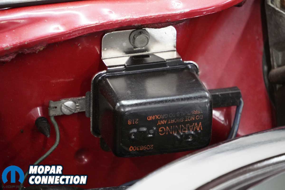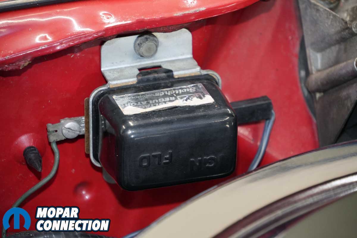 Above Left: The voltage regulator on the Road Runner was functioning to factory specs, but it did not have the original appearance. Above Right: We picked up a voltage regulator from YearOne that had the correct part number and date code, the 21st week of 1968 (218).