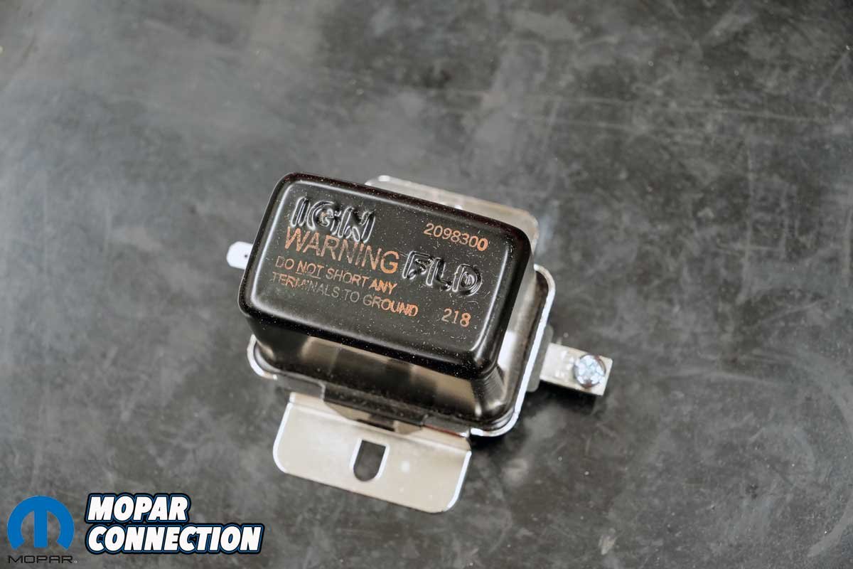 We contacted YearOne to source a date-coded regulator fitting our specifications (Part No. VR218). While the regulator features contemporary solid-state internals rather than a traditional point-style design, it maintains the factory appearance. An added benefit is that no adjustment is required to maintain proper charging voltage, which should remain within the target range of 13.5 to 15 volts.
