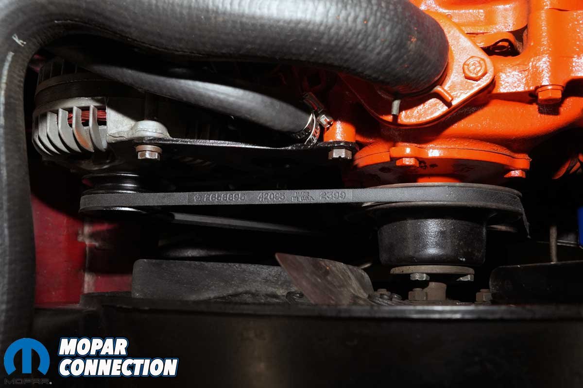 The alternator belt on our Road Runner was excessively worn, so we prioritized replacing it. Ideally, we wanted a belt carrying the correct date-appropriate part number, 2658895. After some online searching, we located the proper belt through Herb’s Parts, which offers several internal listings for this application.