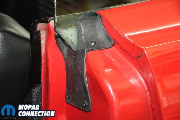 Above Left: The Road Runner was missing the driver’s side quarter window seal. Above Right: We found a correct NOS seal and installed it with leftover NOS screws.