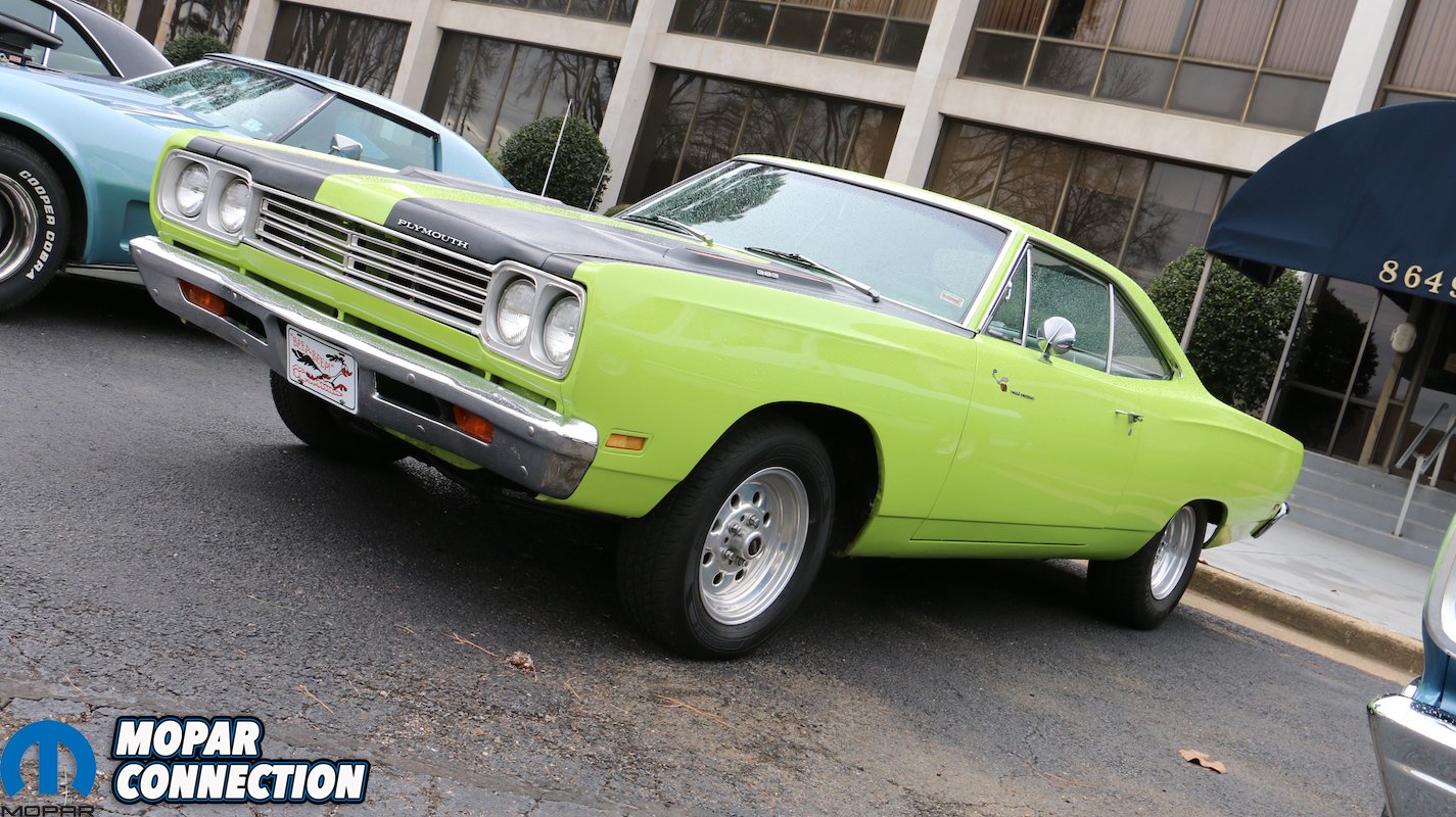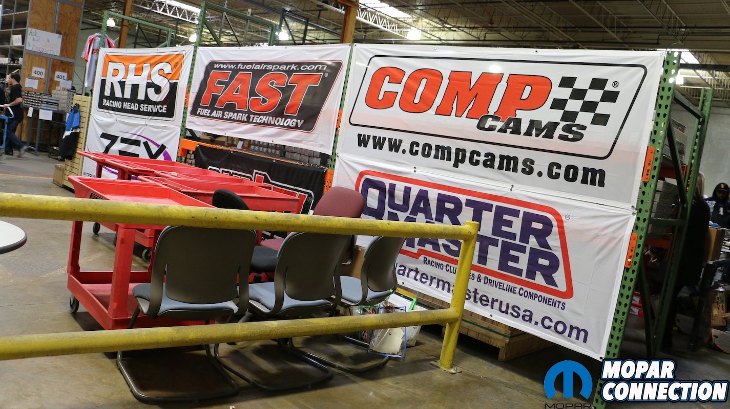 As the skies cleared the parking lot out front began to fill. The forward lot was reserved for those daring enough to drive their prized machines in the dampness. Amid the Mustangs and Camaros a fine ’69 Road Runner swathed in 1970 Lime Light green with blackout stripes was parked front and center. Nearby a ’16 Challenger R/T Skat Pack in Charcoal Gray loomed as passersby ventured inside to the warehouse sale to capitalize on the blowout deals, and celebrate the grand opening of the Speed Parts Distributors retail showroom.