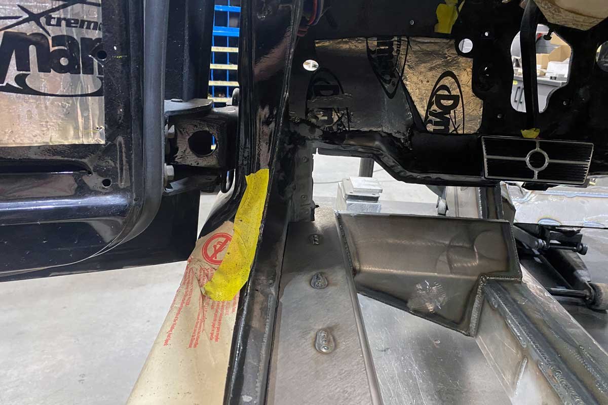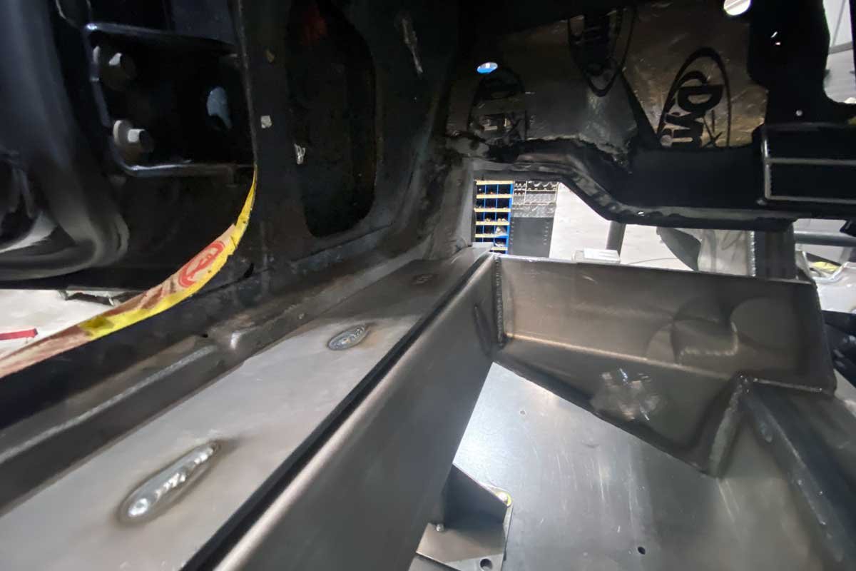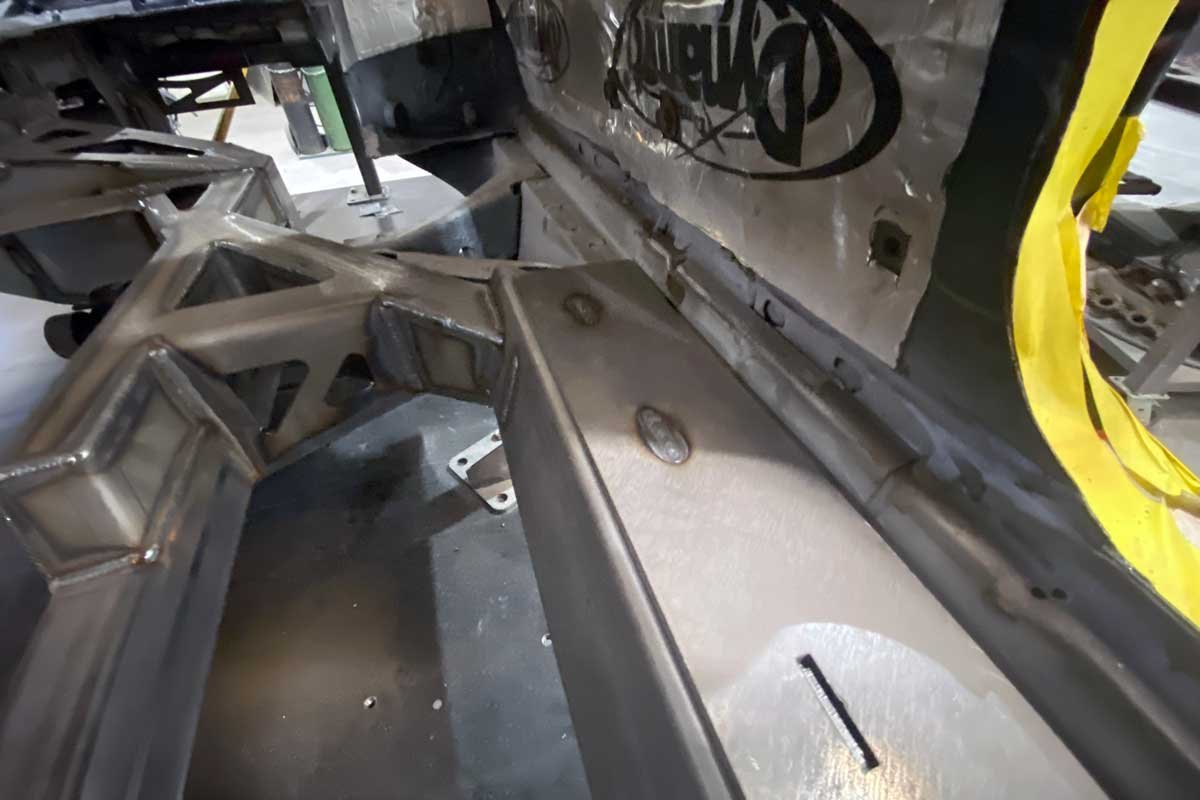 Above Photos: The Speedtech Performance technicians carefully fit and weld the robust chassis to the former uni-bodied B-body.
