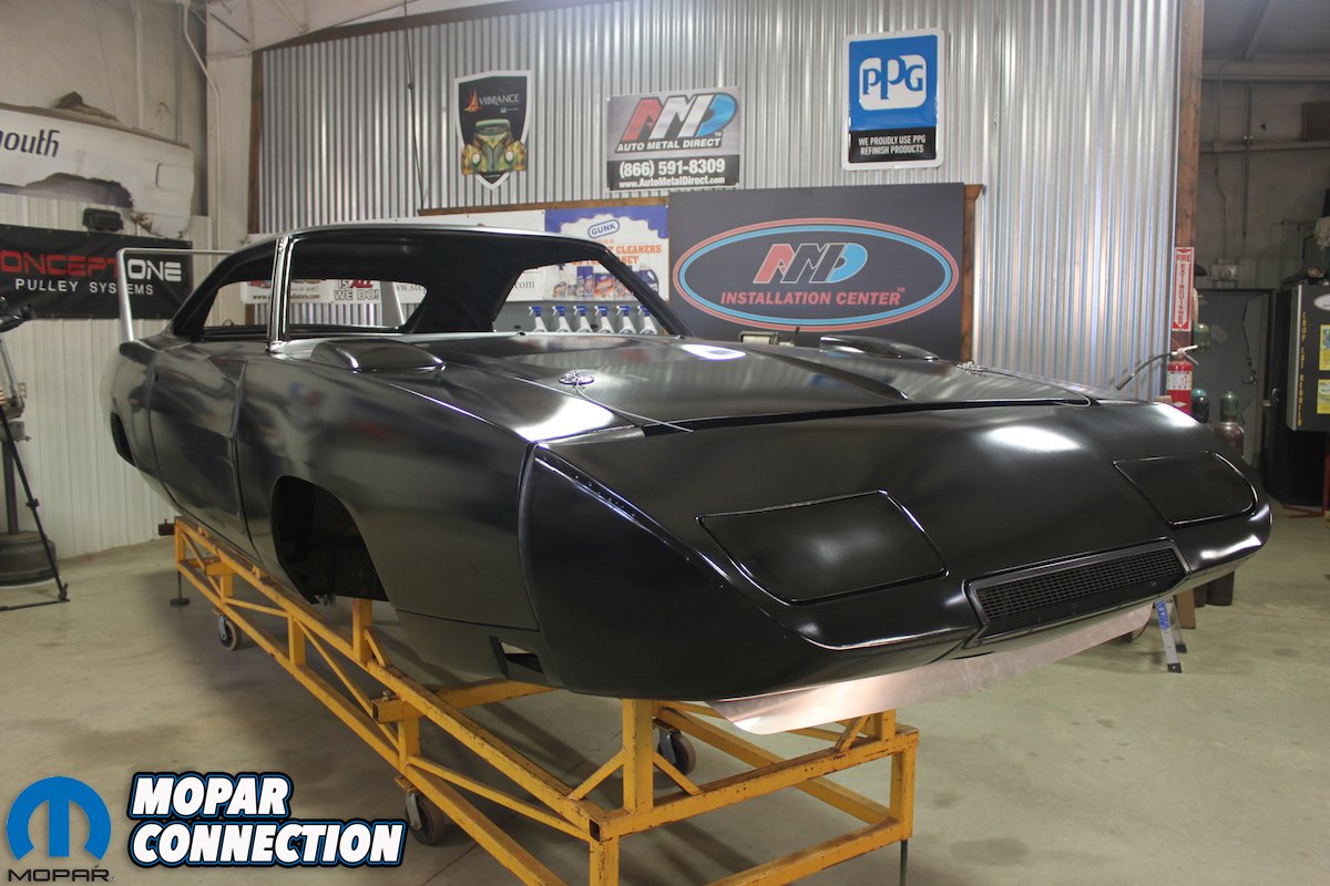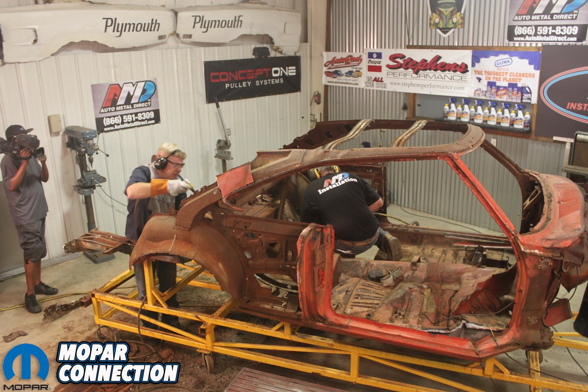 That got the wheels turning and from there; a meeting was set between Auto Metal Direct CEO Mark Headrick, AMD Installation Center/Classic Muscle Metal owner Craig Hopkins and Ted Stephens. It seems a lot of people wanted to see the Daytona rebuilt. It was set; the Daytona would be brought back from the dead and in a special way to boot. It was decided that the AMD Installation Center would be doing the work with fresh AMD metal supplied from Classic Muscle Metal. The entire rebuild would be the center point of the new season of MAVTV’s “Chop, Cut, Rebuild” TV show with Dan Woods.