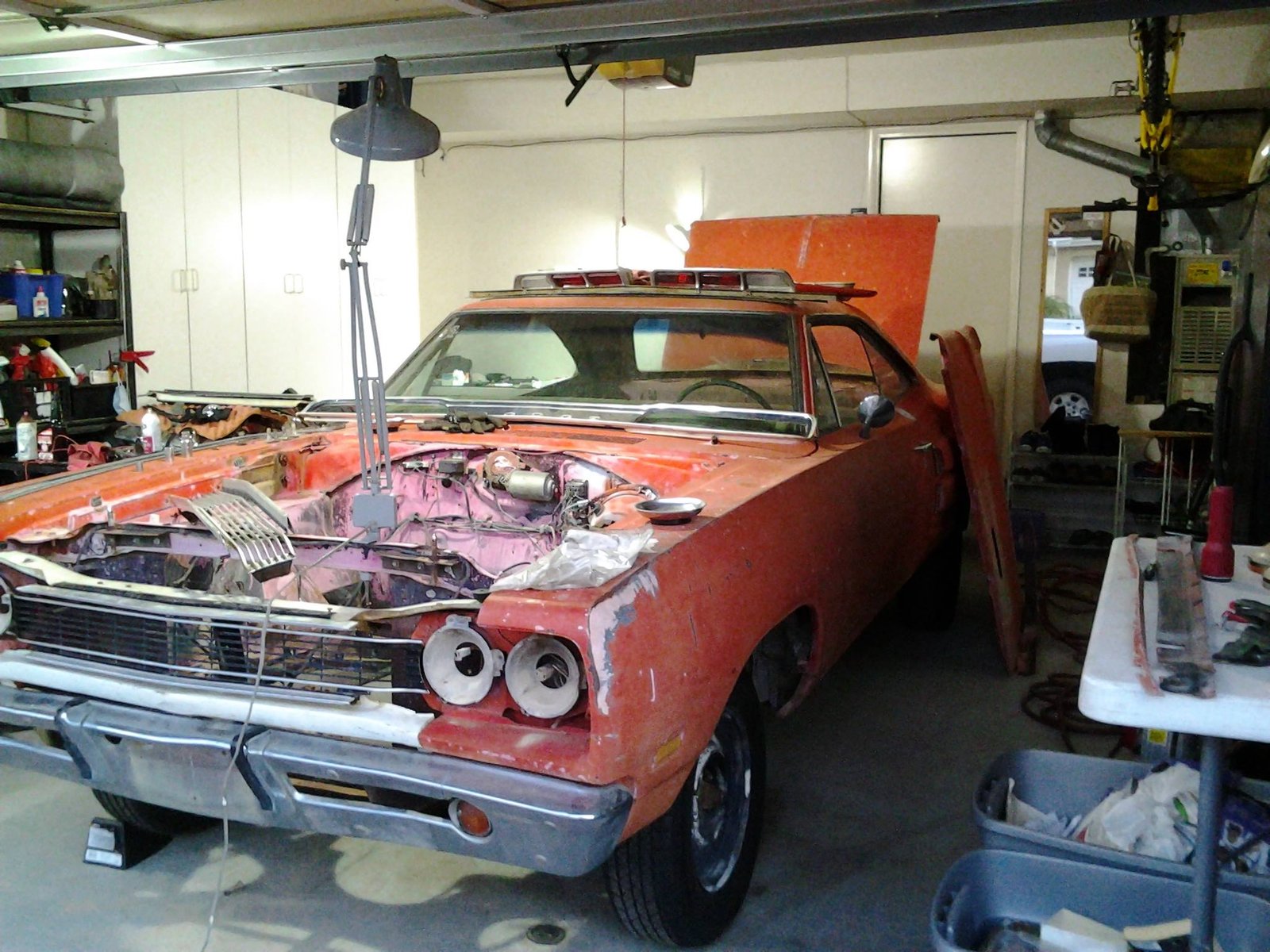Around 1980 or so, he removed the engine for some reason and just never did anything with the car after that. The car has sat away from any main highway for all these years just sitting. This is why there is virtually no rust anywhere on the car. Samuel says his dad got old and since he was his closest son, he wanted him to have the car. Currently the car wears very faded orange paint but he states that his dad painted it orange before it was parked. As a child growing up and later in life, he has always remembered his dad’s pink Super Bee.
