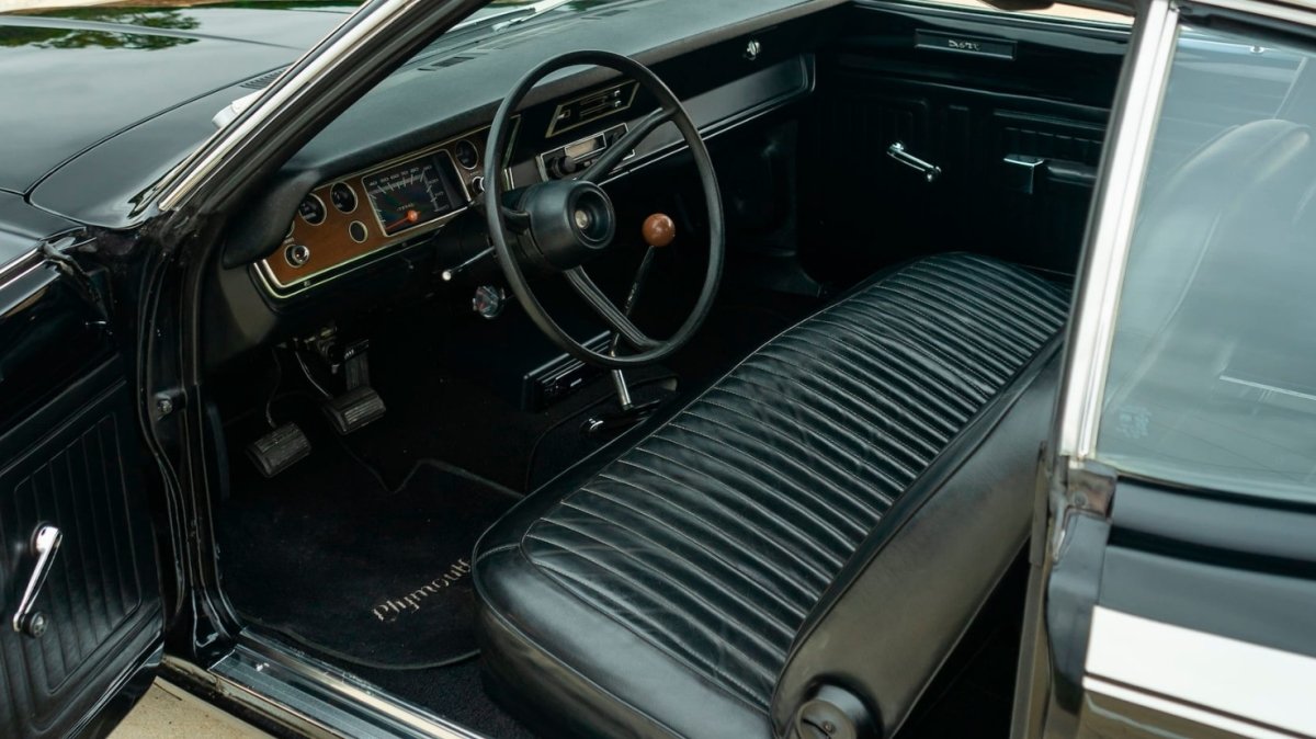 This Duster features a striking color combo as it’s painted in rare factory-correct TX9 Formal Black with white 340 stripes. The engine compartment is detailed beautifully and looks as it would have when it rolled out of the assembly plant. Inside, you’ll find a black bench seat interior, Hurst 4-Speed shifter and an AM radio. There have been some minor modifications to the interior such as a modern Kenwood CD player and a SunPro Super Tach II but otherwise, it looks stock. With 3.23 gears out back, this Duster is the perfect cruiser.
