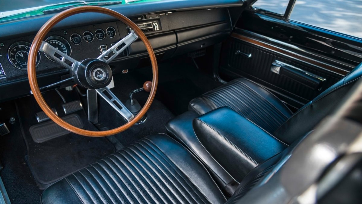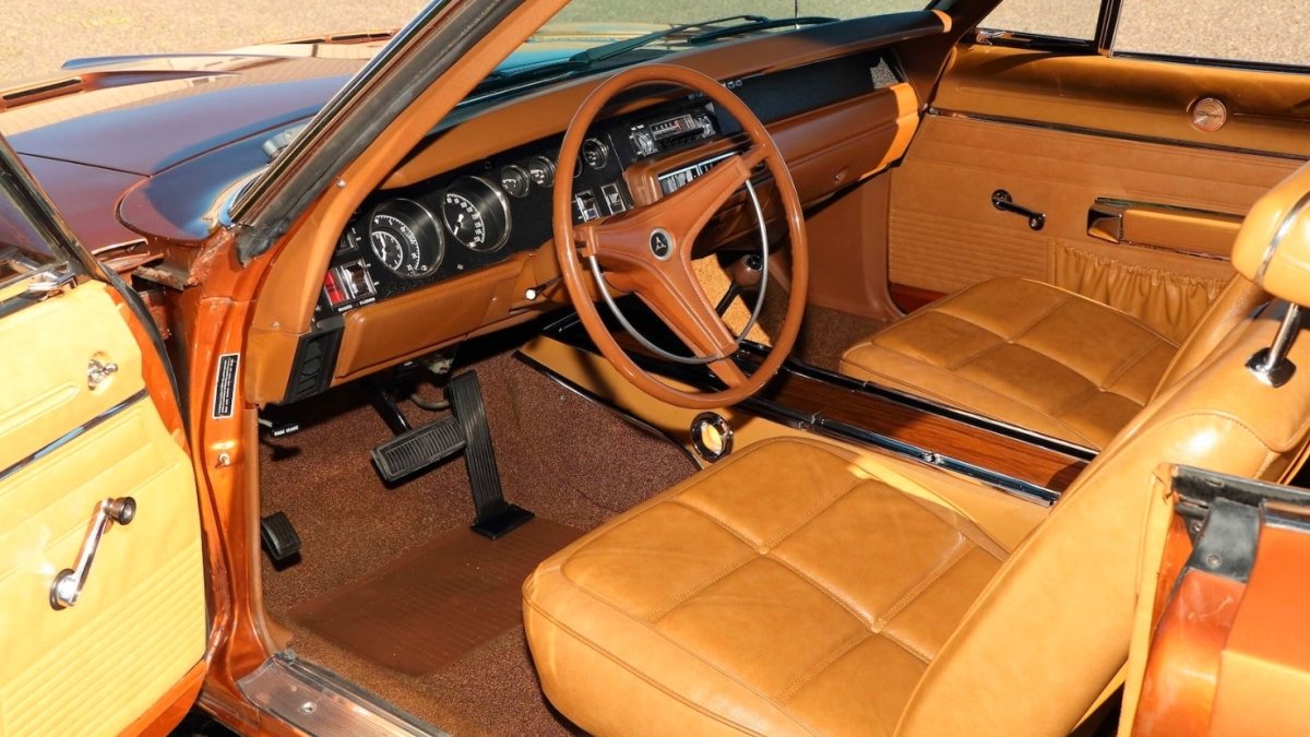This absolutely gorgeous Bronze Metallic ’69 Coronet R/T was lacking information on Mecum’s site but being as we are such big fans of Bronze B-bodies; we just had to include it! The black vinyl top and black R/T stripe across the rear compliment the paint just perfectly along with the road wheels and redline tires. On the inside you’ll find a black bucket seat interior with a column shift automatic. Under the hood sits a 440 big block with the N96 Ramcharger fresh air hood.