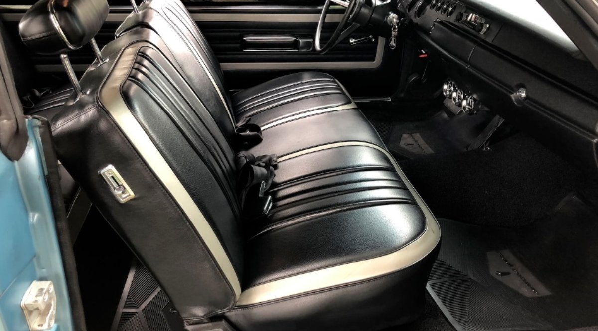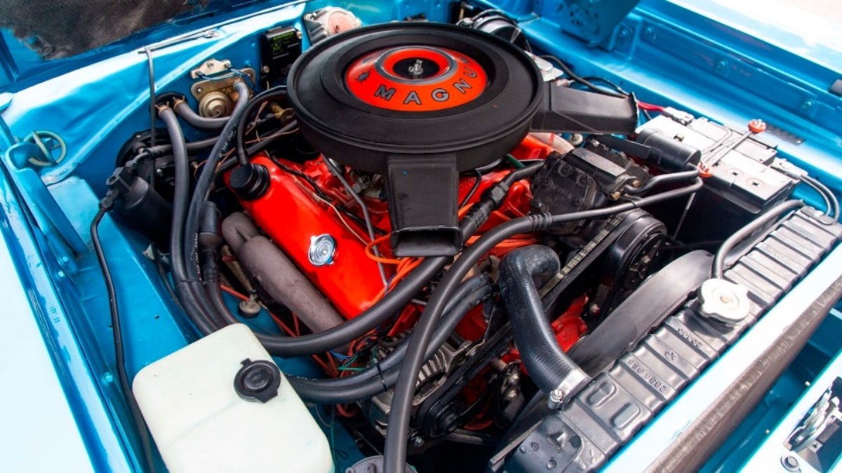 With less than 100 miles on the restoration, this B5 Blue on blue GTX is powered by a 440 and 727 Torqueflite automatic transmission. It’s equipped with a black vinyl top, air conditioning, bucket seats, center console, power steering, power brakes, Tic-Toc-Tach and Rallye wheels. While it does need a couple of minor things to be perfect and correct, it’s something you could easily cruise around in and be very proud of.