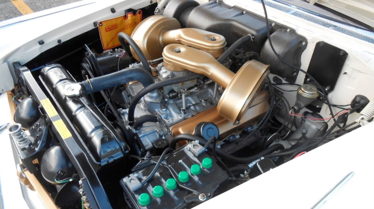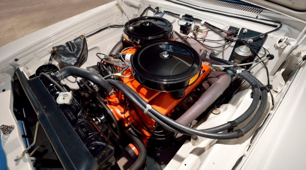 Coming from the Wayne Davis collection, this very special Sport Fury is purported to be the last High Compression Max Wedge Hardtop ever produced. On top of that, it’s also the only High Compression 1964 Max Wedge Sport Fury known to exist and 1 of 3 Max Wedge Sport Furys with a 4-speed in this color combination listed in the Chrysler Registry. Delivered new to Melrose Motors in Oakland, California, this Sport Fury has been given a full ground-up overhaul using NOS parts by Rocket Restorations in Olympia, Washington. Under the hood is the 12.5:1 compression-ratio 426 Max Wedge engine backed by an A833 4-speed manual transmission and a 4.56-geared Sure Grip rear end. It’s painted white and features a stunning blue bucket-seat interior.