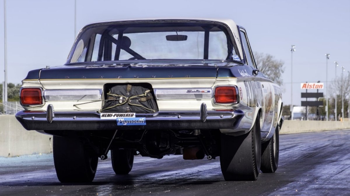 This ’65 is just 1 of 6 acid-dipped, altered-wheelbase cars produced by Plymouth in 1965. Drag raced in competition by Lee Smith, it’s the most well-documented example and the only one allocated to a private owner. On top of that, it’s just 1 of 2 known to exist. Featuring signatures by Lee Smith and previous owners, it comes with a ton of documentation including Chrysler factory telegrams and letters to Lee Smith and assorted post-restoration documents and books. Fiberglass fenders, doors, hood, hood scoop, bumpers, deck lid and dashboard along with Plexiglas and Lexan windows give it a curb weight of just 2,800 pounds despite the monster 426 Hemi under the hood.