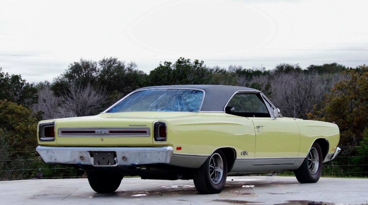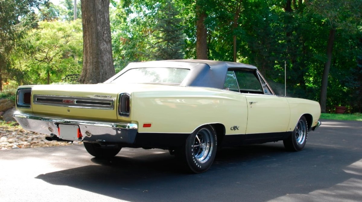 If Bronze isn’t your color than this Sunfire Yellow example might be up your alley. This numbers matching GTX convertible is 1 of 700 built in 1969 and is optioned with a 727 Torqueflite automatic transmission, power windows, power steering, AM radio, center “buddy seat” armrest and an Air Grabber hood.