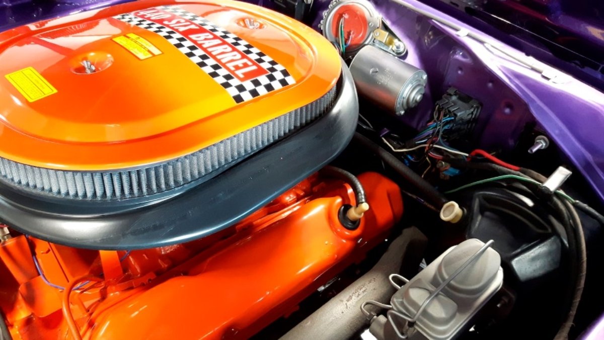 This FC7 In Violet beauty is just 1 of 451 Six Barrel coupes built with a 4-speed transmission. It was given a rotisserie restoration with over 1,200 hours in labor and another 500 hours in just paint work! It’s numbers matching and fully documented with an original fender tag and broadcast sheet and came optioned with a 3.54 geared Dana 60 rear end, Air Grabber hood, rear Go-Wing and a white bench seat interior.