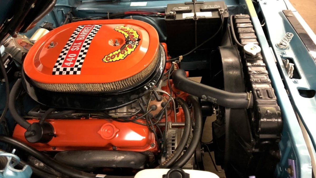 If you are in the market for a V-Code Road Runner, there are a number to choose from. This numbers matching original EB3 Ice Blue Metallic Road Runner is 1 of 222 V-codes built with an automatic transmission. It came equipped with an Air Grabber hood, Sure Grip Performance Axle Package with 3.55 gears, color matched steel wheels with dog-dish hubcaps and a black bench seat interior with silver accents. It comes with its original broadcast sheet and a Chrysler Registry report.
