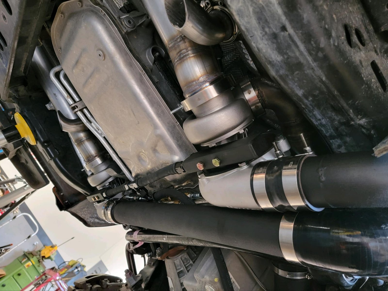 Those who opt to run E85 will need further fuel system upgrades as well, but of course, E blends will yield bigger power numbers. The turbochargers are mounted right next to the engine, in an optimal spot that eliminates turbo lag and maximizes power.
