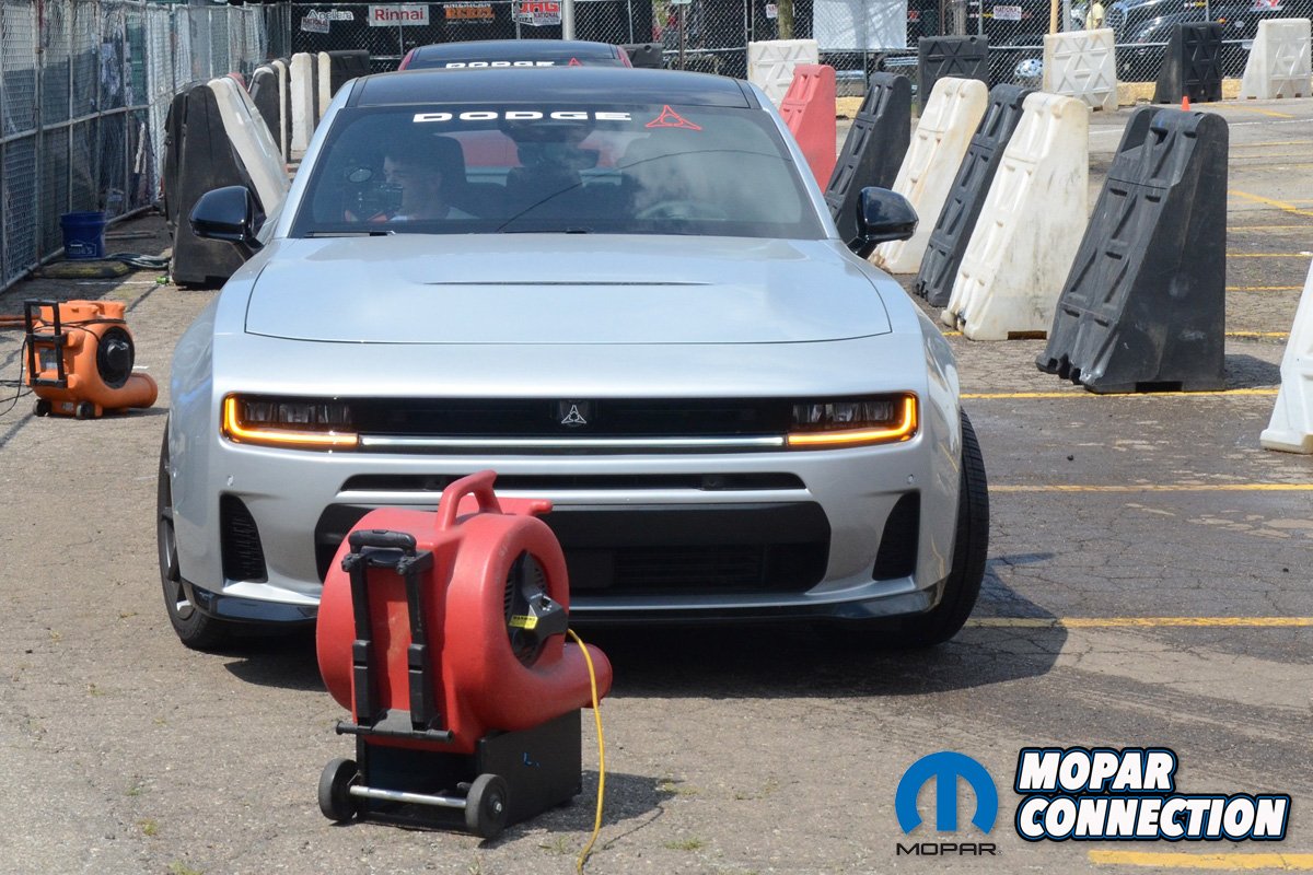 Although we were not allowed to drive the new gas car down the track, we did make a pass on the temporary drag strip in a Challenger SRT Hellcat, a Durango SRT Hellcat and a Charger Daytona Scat Pack. Although the new Charger SIXPACK is down on power compared to all three of those other vehicles, the all-wheel-driven system allows it to use far more of its power on a hard launch compared to the 717-horsepower Challenger, which takes quite a bit of pedaling to get any grip.