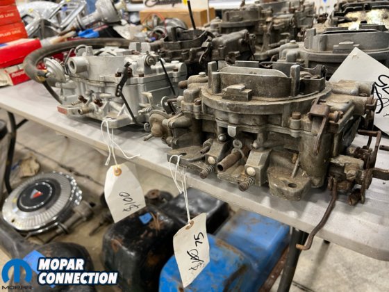 Most used part price checks came in about as expected. Bigger ticket items like Six Pack intakes were $600 to $900 while the mating carburetor sets asked $1,800 to $2,500. A glut of 426 Hemi heads were on hand, many unmarked, and probably out of our price range. No less than six sets were spied, but more intriguing was a pair of 340 Six Pack cylinder heads. Looking fairly fresh, a tag of $2,500 for these highly-specialized pieces probably wasn’t too far off.