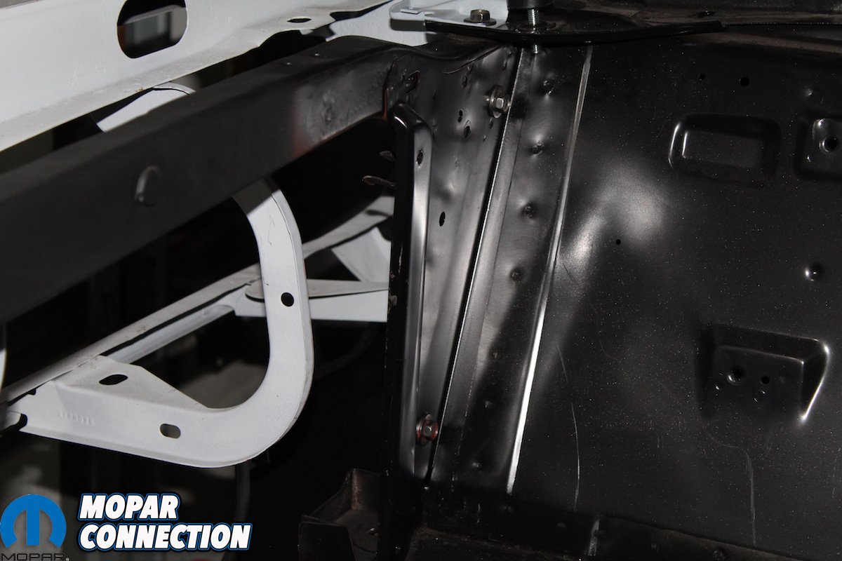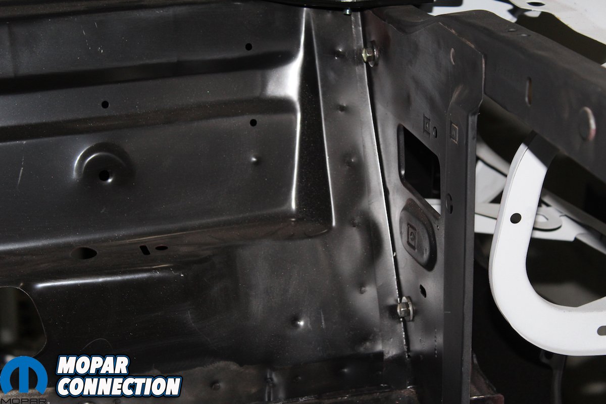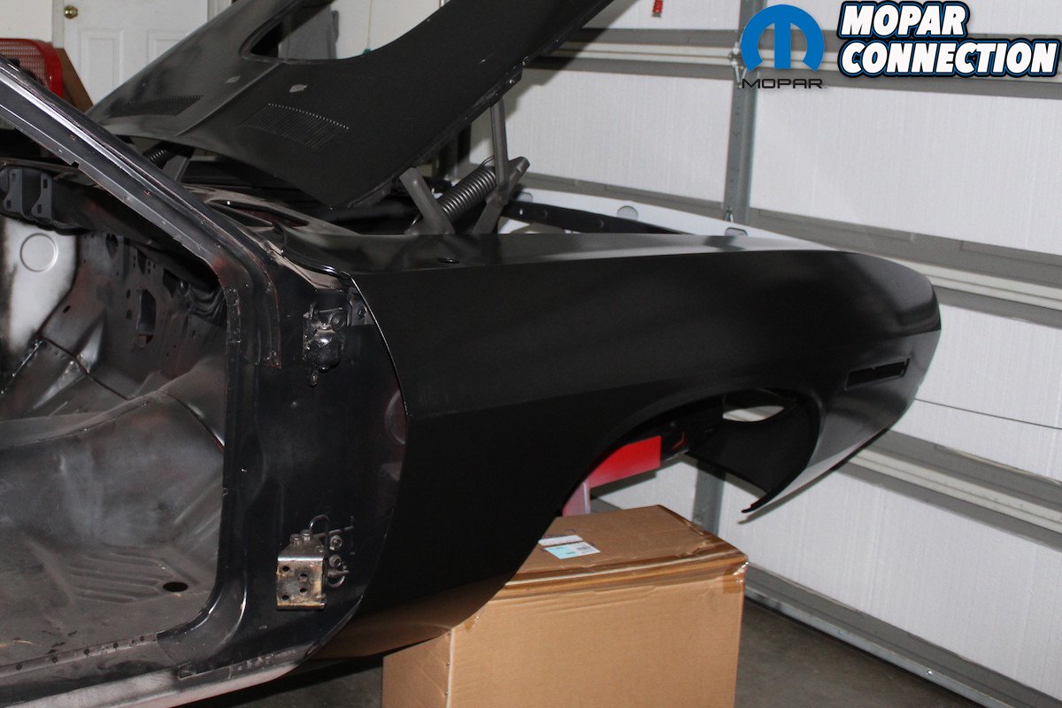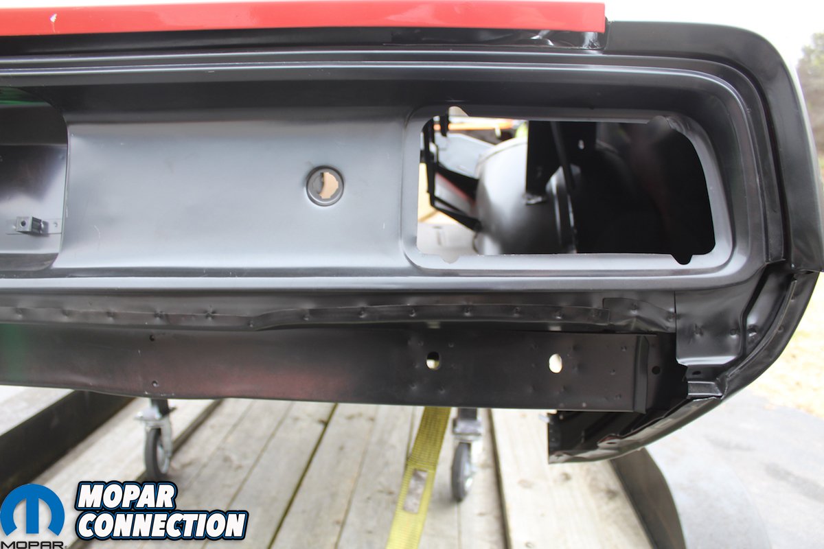 Because of the uniqueness of this project and the efforts required to make it happen, Classic Industries wanted to be a part of the “Comeback ‘Cuda” project as well (they were actually one of the first suppliers to come on board). They graciously provided us with the steel Shaker hood and trim ring, the full trunk pan, and the 26-inch radiator support. The parts matched up perfectly with all the other AMD sheet metal and helped in finalizing its transition from a plain Jane 318 Barracuda into a Shaker-topped 426 Hemi ‘Cuda.
