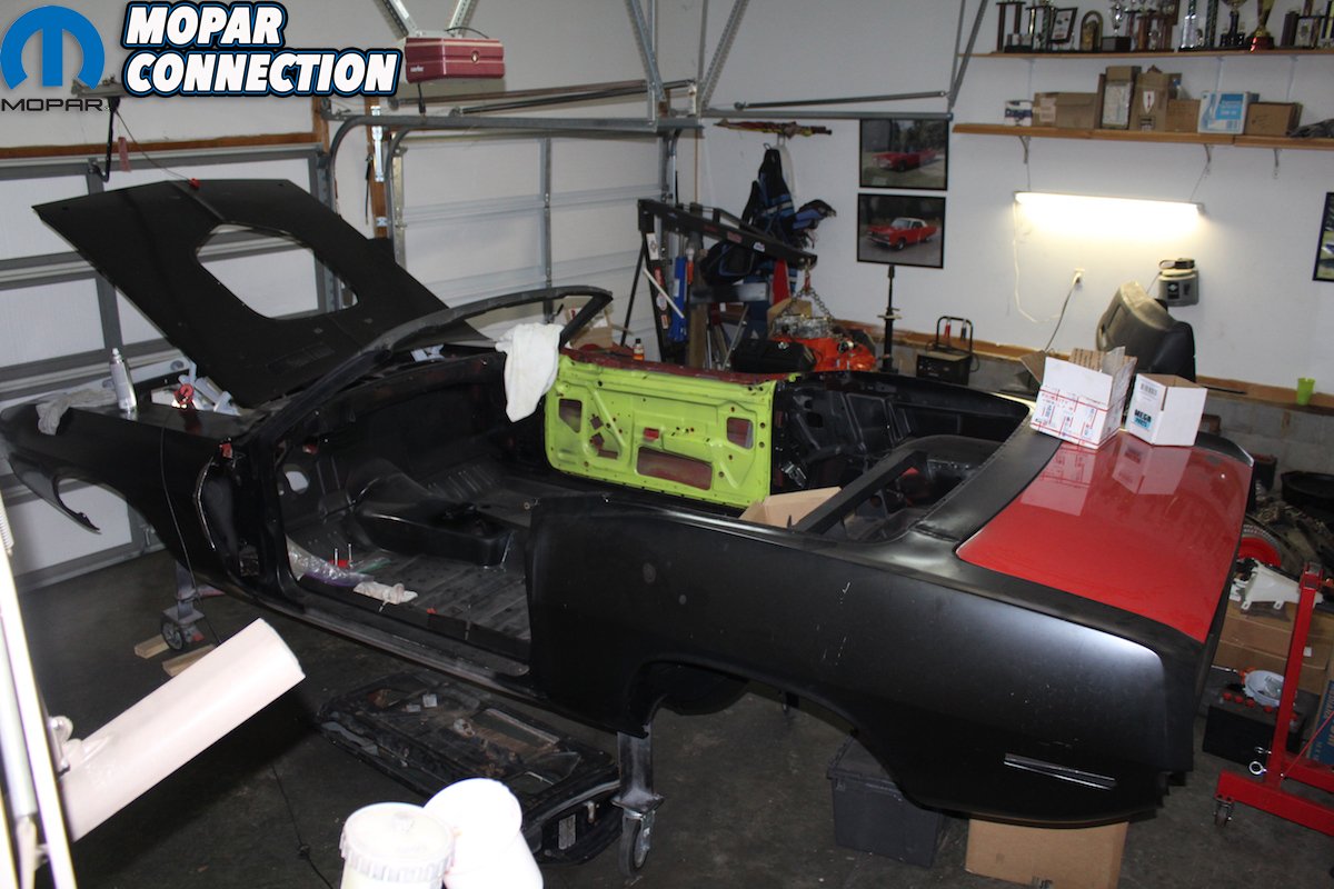 Additional convertible-specific panels were needed to bring the “Comeback ‘Cuda” …well, back. The quarter panels for convertibles are not reproduced – only the hardtop ones are. After searching, we finally found the needed quarter panels, original convertible doors, trim, glass, and other hard-to-find parts. To set the record straight, the hardtop doors and convertible doors are the same in ’70 and ’71, only the B-pillars are punched for the brass spring-loaded wedges that reinforce the doors. Yet, the door glass is different. So, don’t let any well-known “expert” tell you different and charge you three times what these doors are worth.