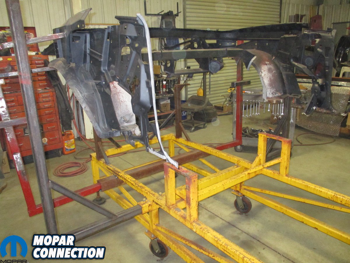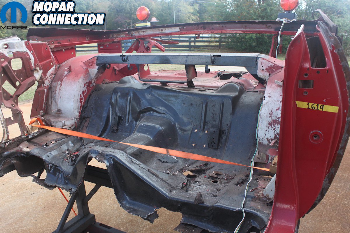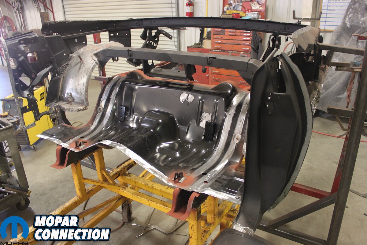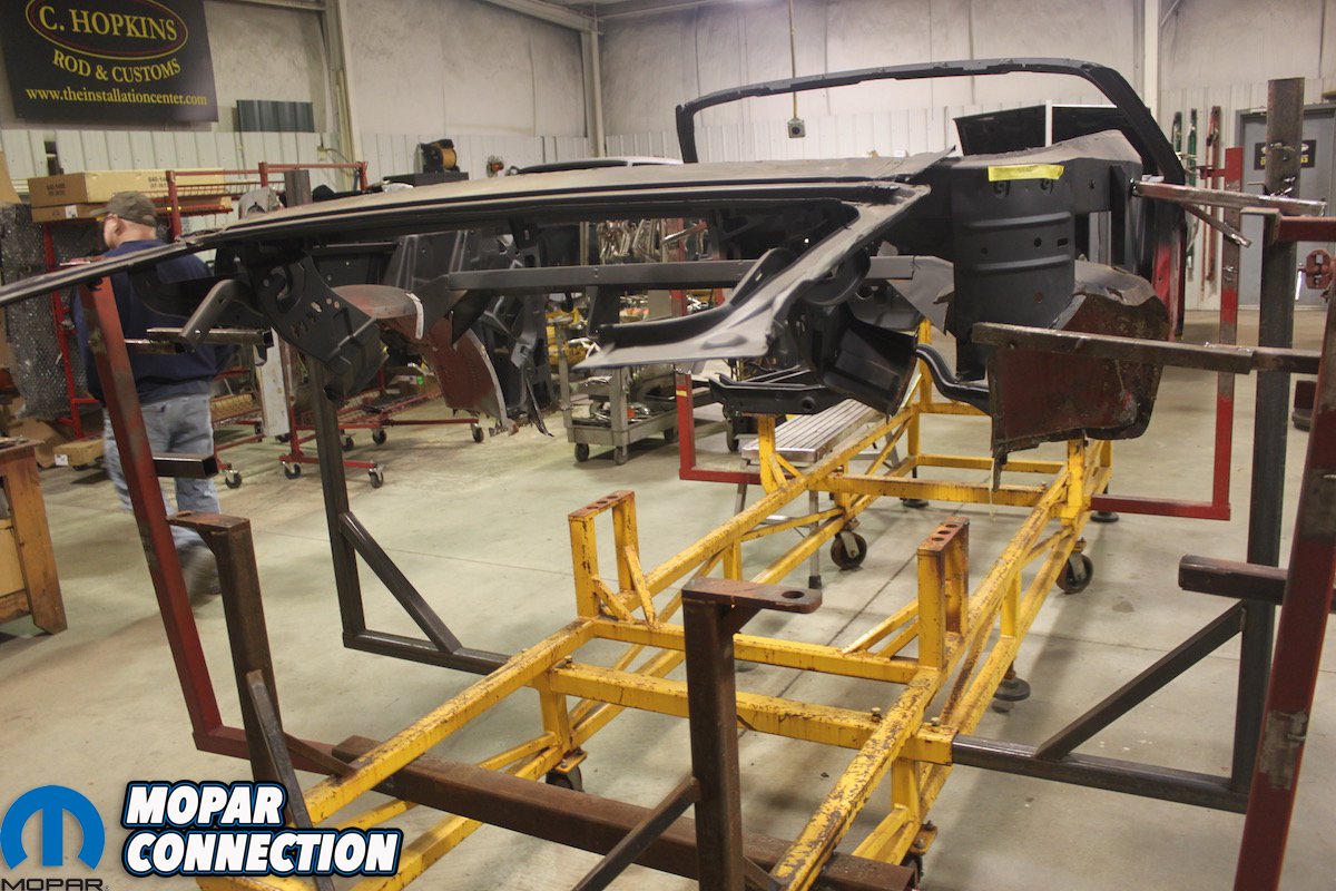 First things first, the ‘Cuda was “chopped”, wherein they remove as much of the damaged, bent or rusted metal that will be replaced while keeping the structure of the car as intact as possible. This is also the only way Craig and his team can see the condition of every panel and know what needs to be replaced or repaired. Often, what remains is not much more than a mere skeleton that requires gusseting and pre-made jigs to retain the car’s original shape.