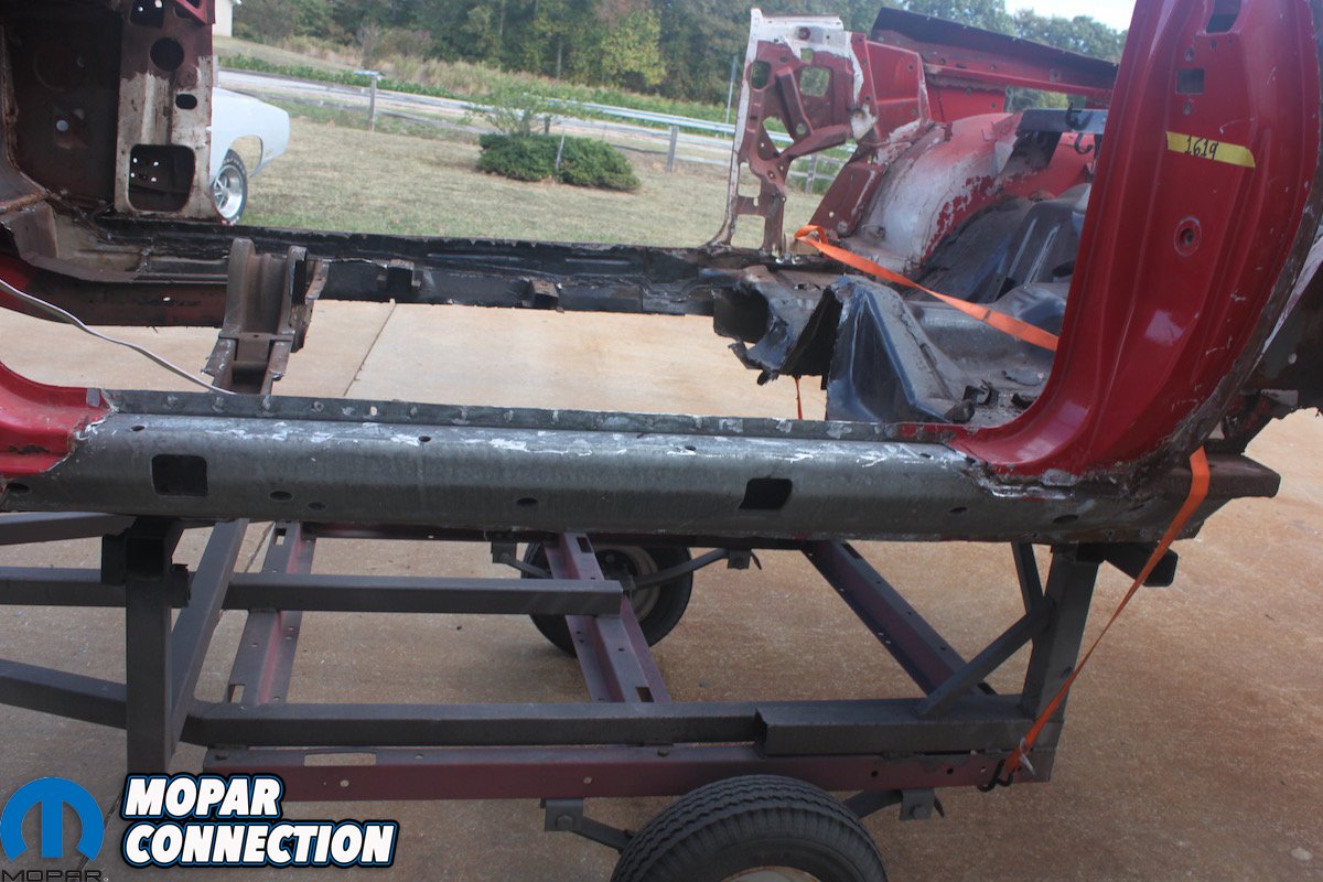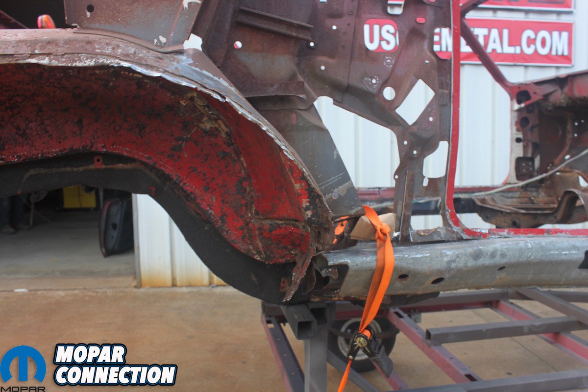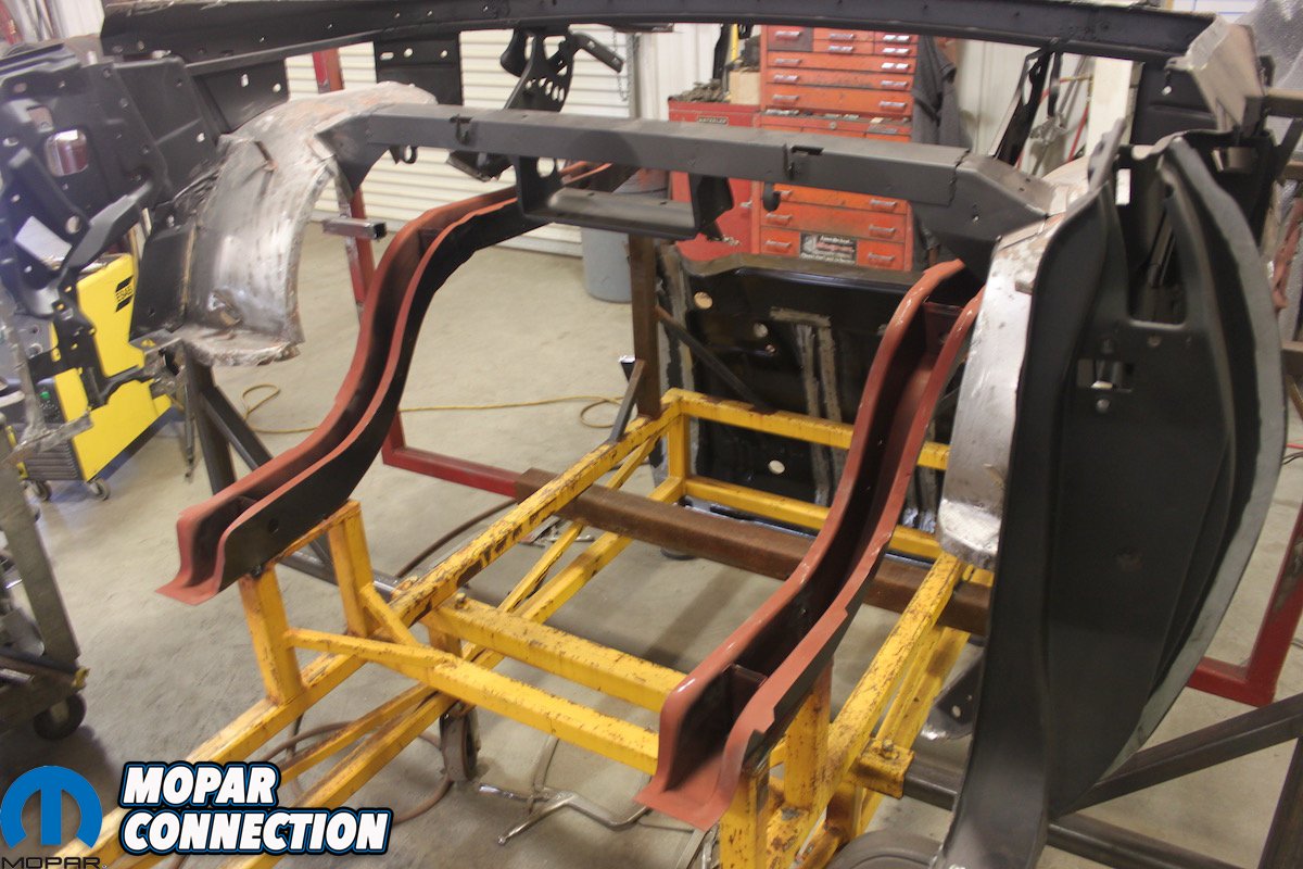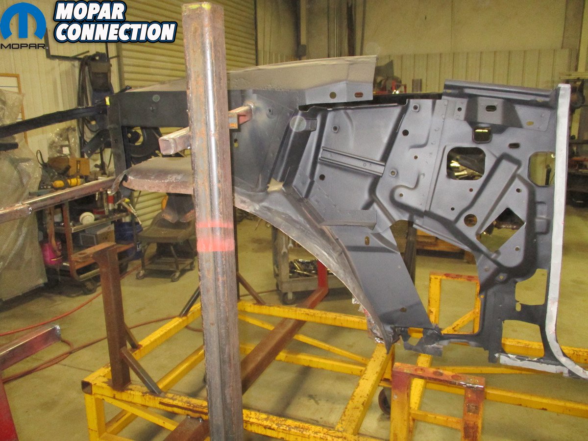 First things first, the ‘Cuda was “chopped”, wherein they remove as much of the damaged, bent or rusted metal that will be replaced while keeping the structure of the car as intact as possible. This is also the only way Craig and his team can see the condition of every panel and know what needs to be replaced or repaired. Often, what remains is not much more than a mere skeleton that requires gusseting and pre-made jigs to retain the car’s original shape.