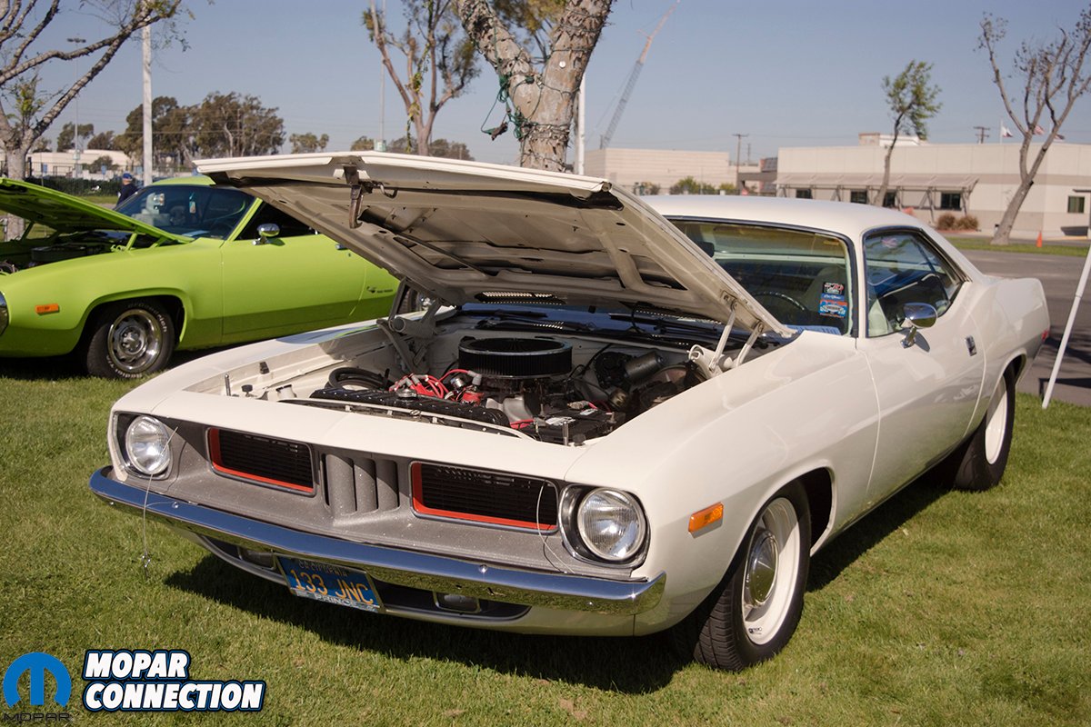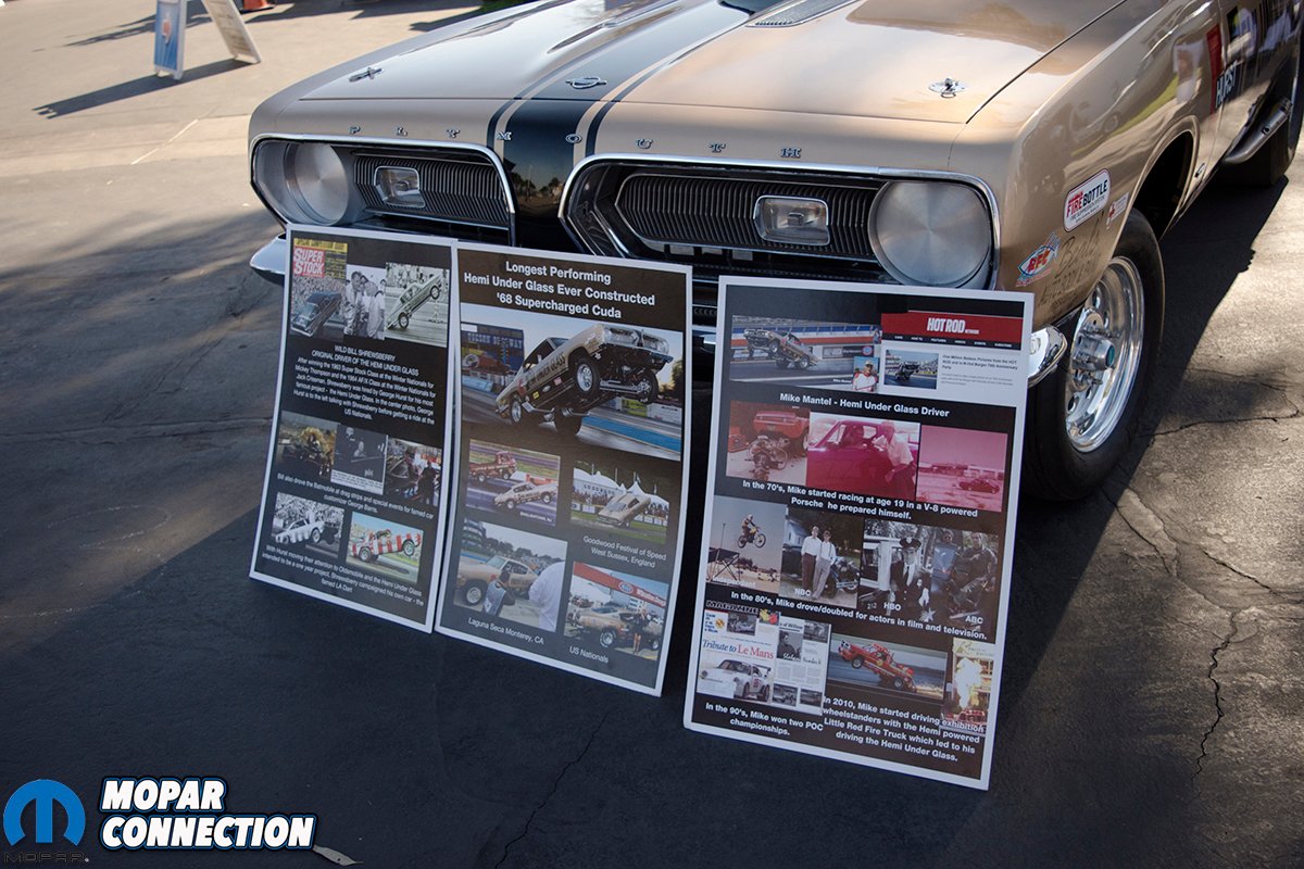 A similar engine setup was also used on the Barracudas that were sponsored by the Plymouth Dealer’s Association, which were raced by the late Tom “The Mongoose” McEwen, and “Fearless Fred” Goeske. The Hemi Under Glass was driven by “Wild Bill” Shrewsberry, who also drag raced one of the four 1966 Batmobiles built by the late car customizer, George Barris. Shrewsberry was also in attendance to answer questions to fans, who once saw this legendary car run. Mike also pointed out that the car he brought to the show was not the car that Bob Riggle crashed at Irwindale Raceway, with Jay Leno riding in the passenger’s seat. The car that Leno was riding in was in fact a brand new re-creation of the famed Hurst Hemi Under Glass.